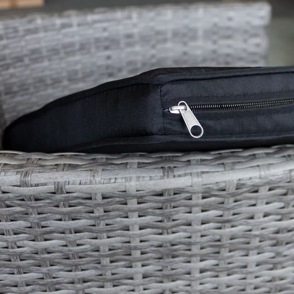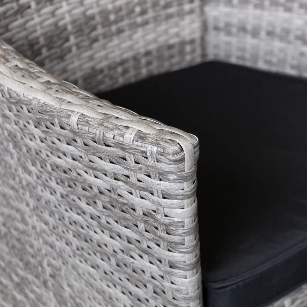 3tlg. Bistrogarnitur Glastisch ‚Salzburg‘ Ø60cm + 2x Rattansessel ‚Boston‘ Grau Inklusive Kissen Schwarz