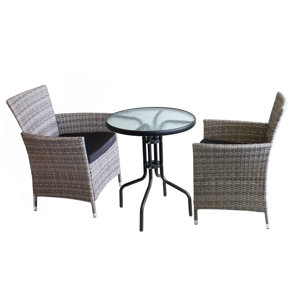 Schreibe die erste Rezension für „3tlg. Bistrogarnitur Glastisch ‚Salzburg‘ Ø60cm + 2x Rattansessel ‚Boston‘ Grau Inklusive Kissen Schwarz“ Antwort abbrechen