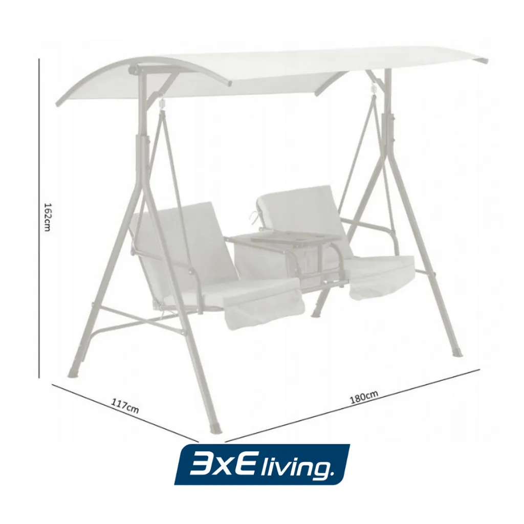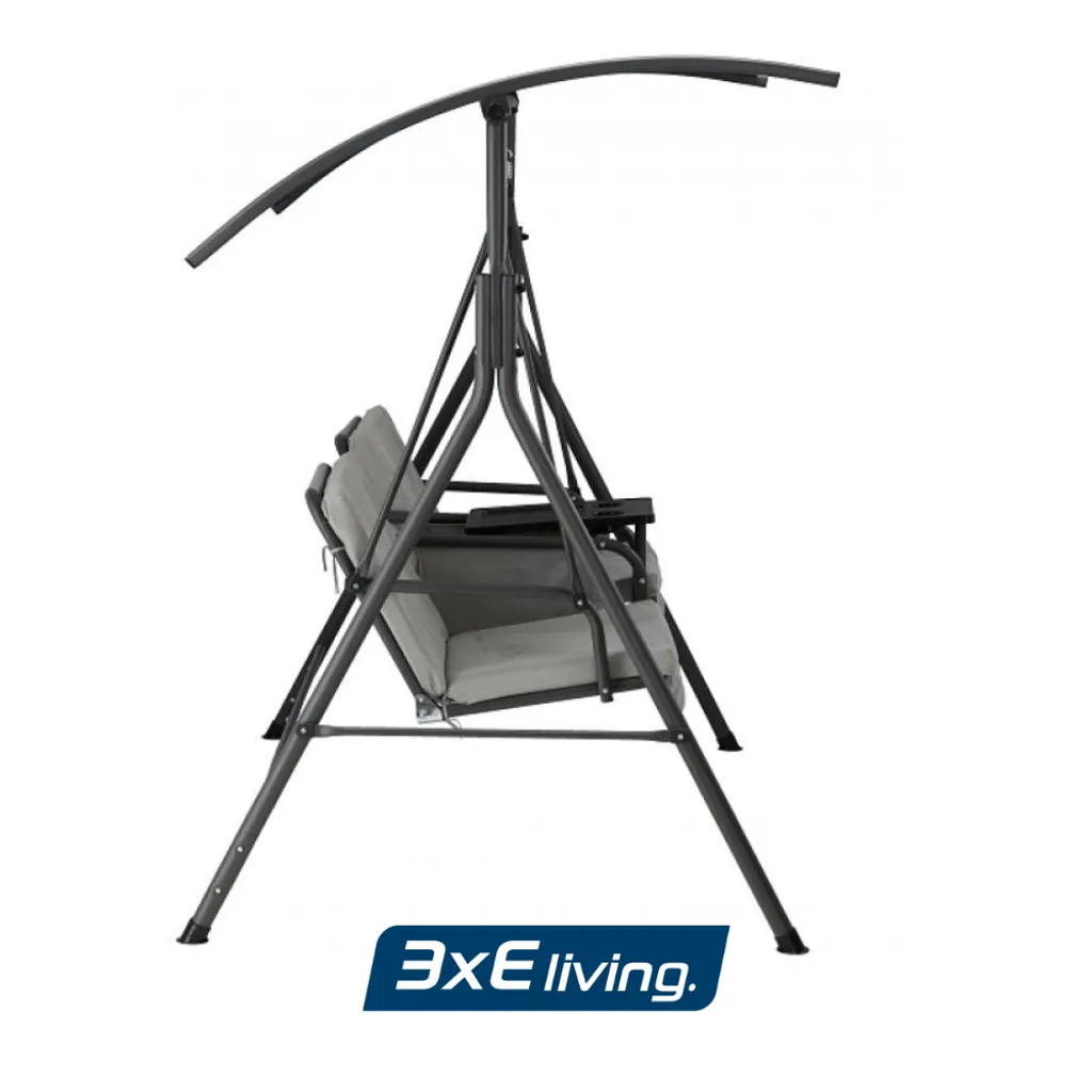 3xEliving RUBY Hollywoodschaukel, Gartenschaukel Mit Getränketisch In Grau (B 180cm X H 162cm X T 117cm)