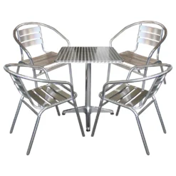5tlg. Bistro-Set Bistrotisch 60x60cm + 4x Stapelbarer Bistrostuhl – Silber