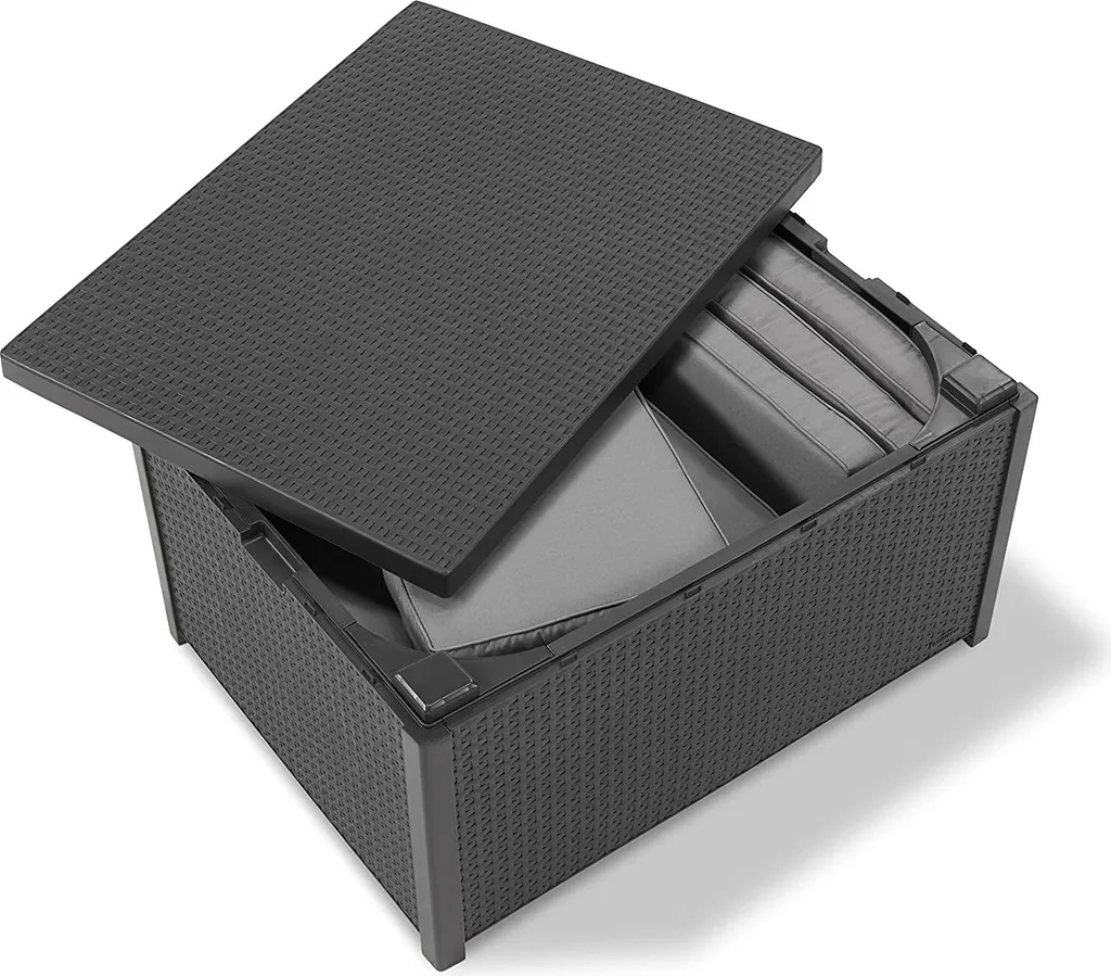 Allibert Arica Storebox Tisch Mit Kissenboxfunktion In Rattanoptik, Anthrazit