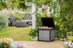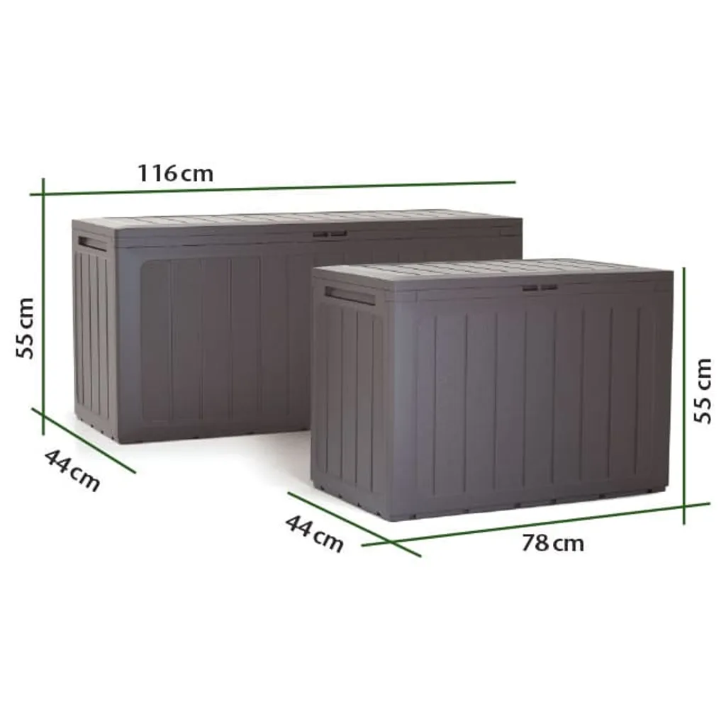 Auflagenbox – Aufbewahrungsbox – Holz-Optik – Gartenbox Aus UV-beständigen Material – Innen- Und Außenbereich – 78x44x55cm – Box – Truhe Mit Deckel Für Kissen, Auflagen, Decken, Etc.