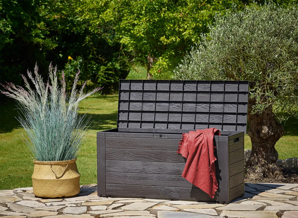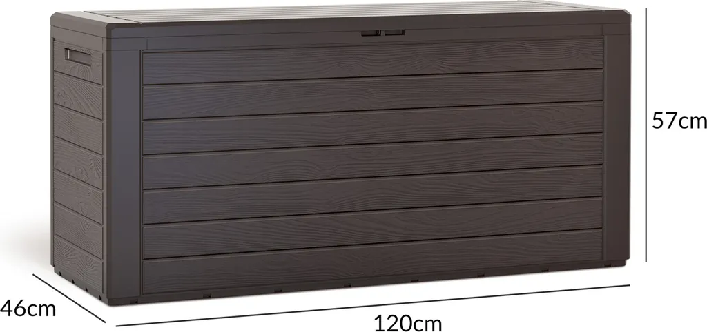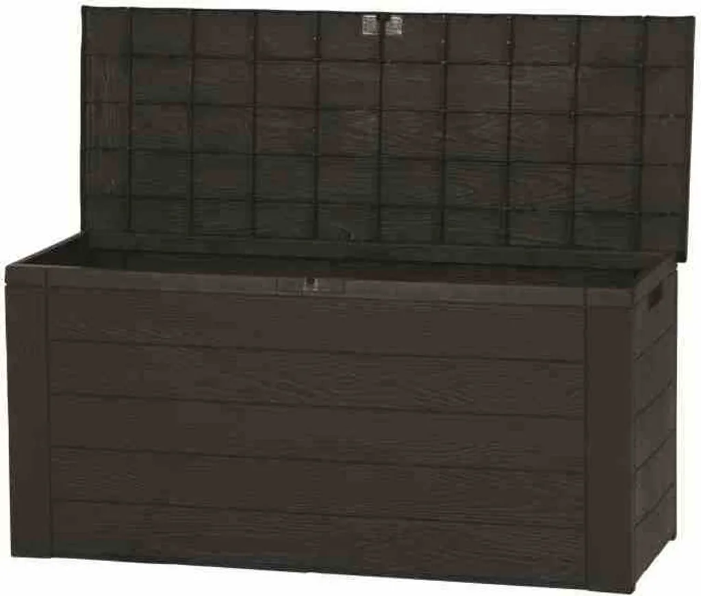 Auflagenbox/Gartenbox „Woody“ H 58 X B 120 X T 46 Cm, Holz Optik, Farbe Dunkelbraun; GTS178509