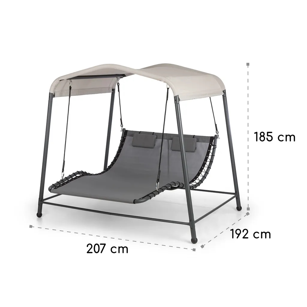 Blumfeldt Palermo – Doppel-Schaukel-Liege, Gartenliege, Stahlrahmen, Sonnendach: 200 X 144 Cm (BxT), Liegefläche: 130 X 207 Cm (BxT), Einfacher Aufbau, 2 Höhenverstellbare Kopfkissen, Grau