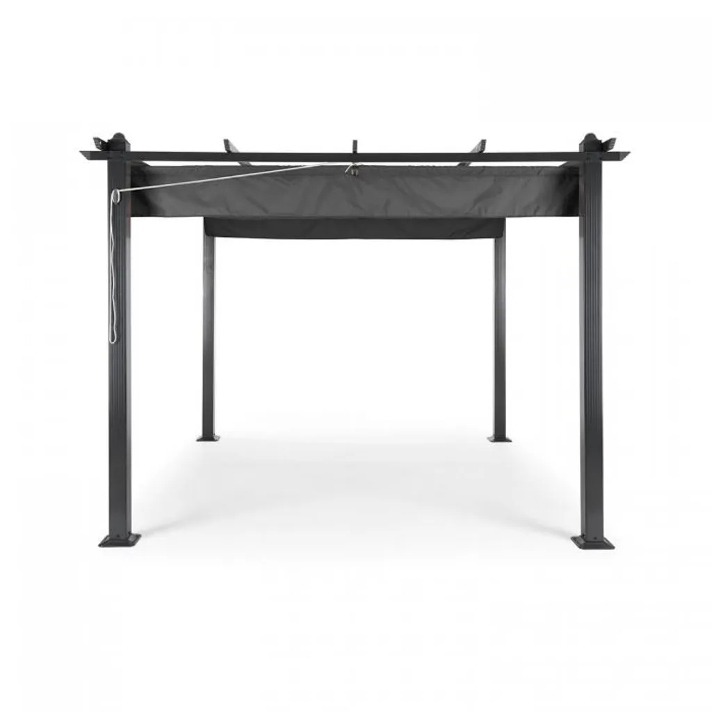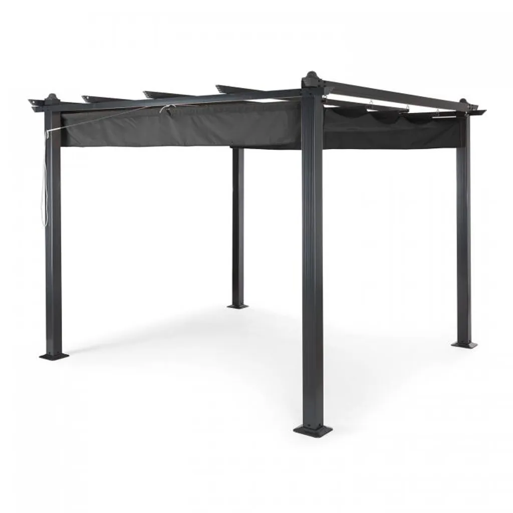 Blumfeldt Pantheon Pergola 3×3 M Sonnendach – Terrassen-Vordach , Wasserabweisender PolyurethanBeschichtung , Stabile 10 X 10cm Eckpfosten , Raffbare Baldachin , Zur Verschraubung Am Boden Geeignet , Grau