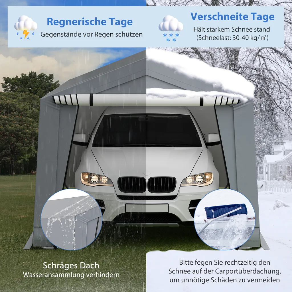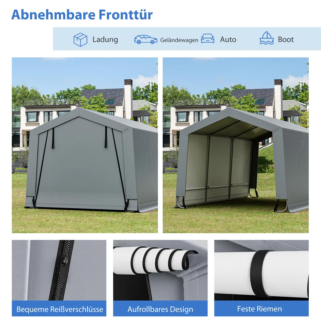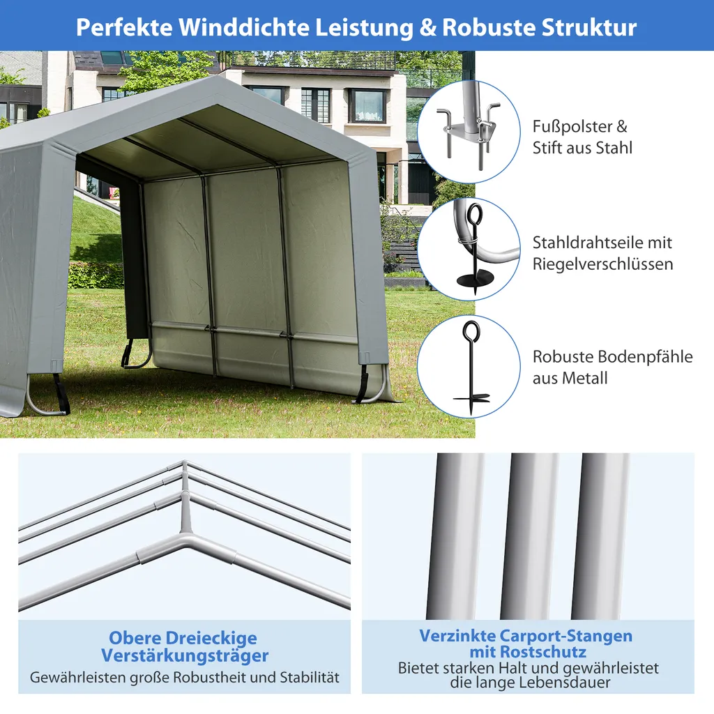 COSTWAY Garagenzelt Carport, Maße: 490 X 290 X 245 Cm, Zeltgarage Mit Türen, Weidezelt Lagerzelt Garage Unterstand, Autounterstand Für SUV, Boot, Fracht, Outdoor-Events