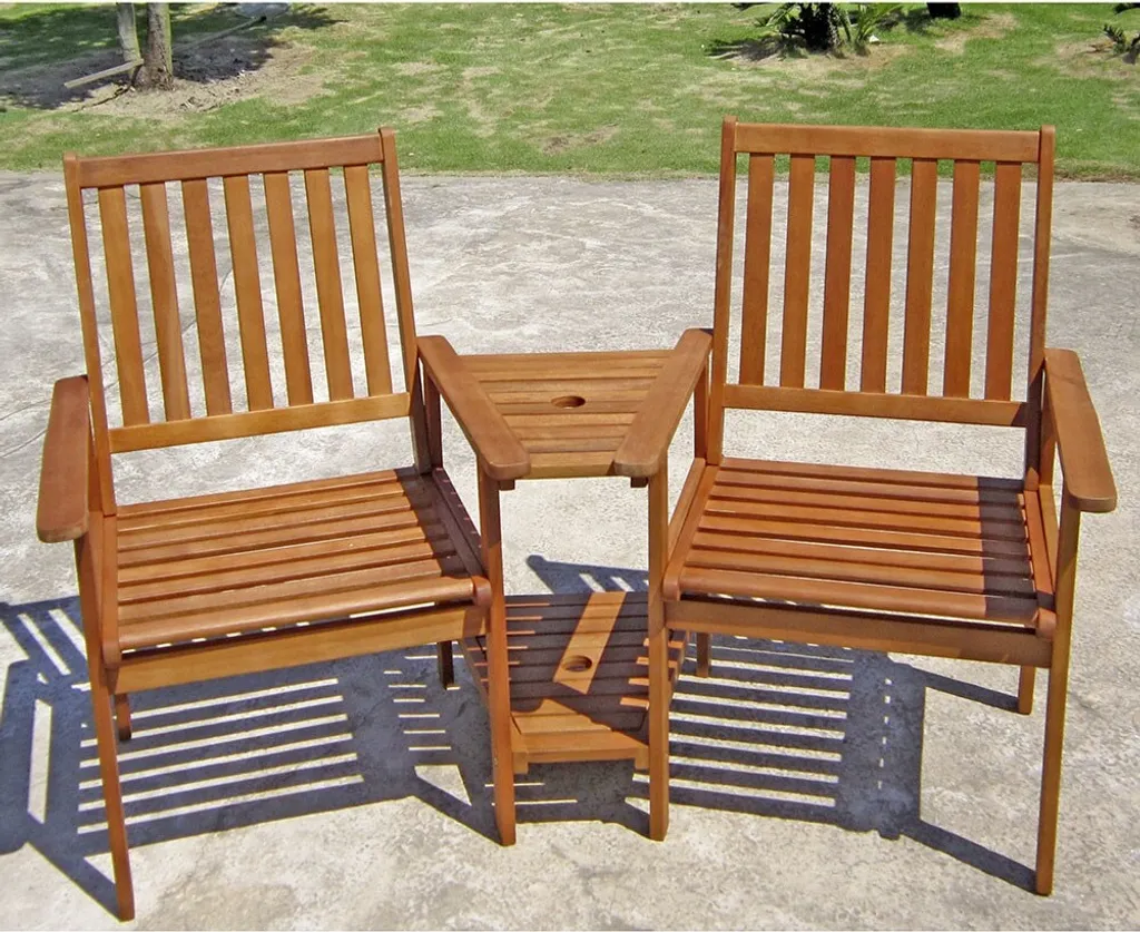Doppelsessel EDISON Gartenstuhl Sonnenschirmvorrichtung Tisch Stuhl 2-sitzer Eukalyptus