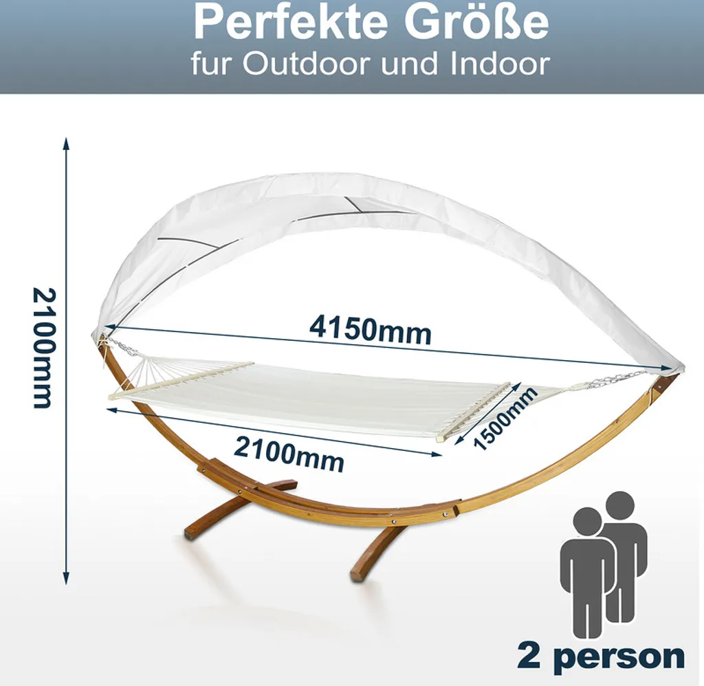 EINFEBEN Hängematte Wetterfestem Hängematten Stabhängematte Outdoor Holz Mit Gestell XXL Garten Hängemattengestell 2 Personen 410cm Gartenliege Liege