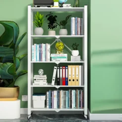 360Home Klappbare Lagerung Abnehmbar Regal Mit Rädern 5 Ebenen Weiß