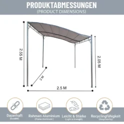 Anbaupavillon Pavillon 3×2,5 Pergola Sonnenschutz Terrasse Gartenpavillon Grau