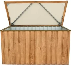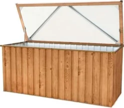 Deuba Auflagenbox Holzoptik 120x46x57cm Kissenbox Gartenbox Garten Truhe Braun, Farbe:braun