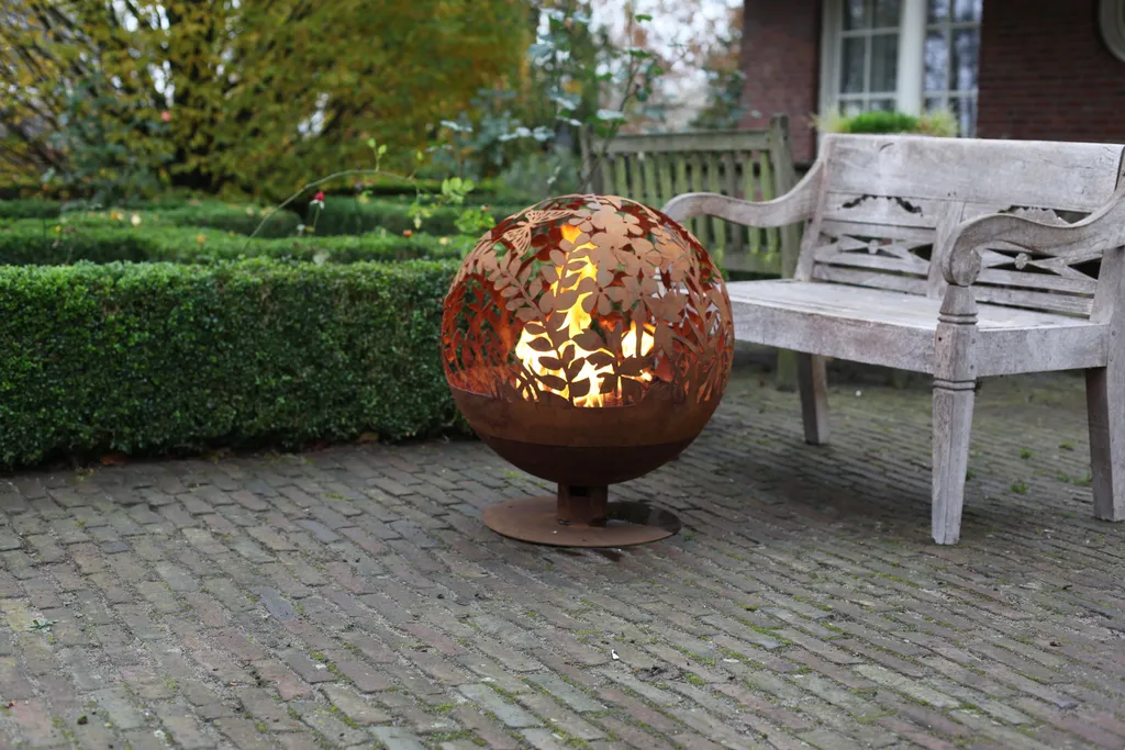 Esschert Design Feuerkugel Blattmuster Laserschnitt Rostbraun FF294