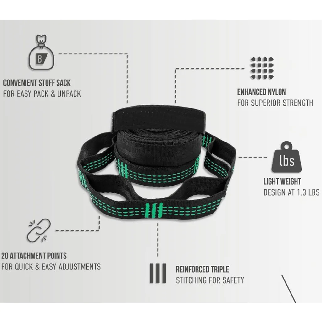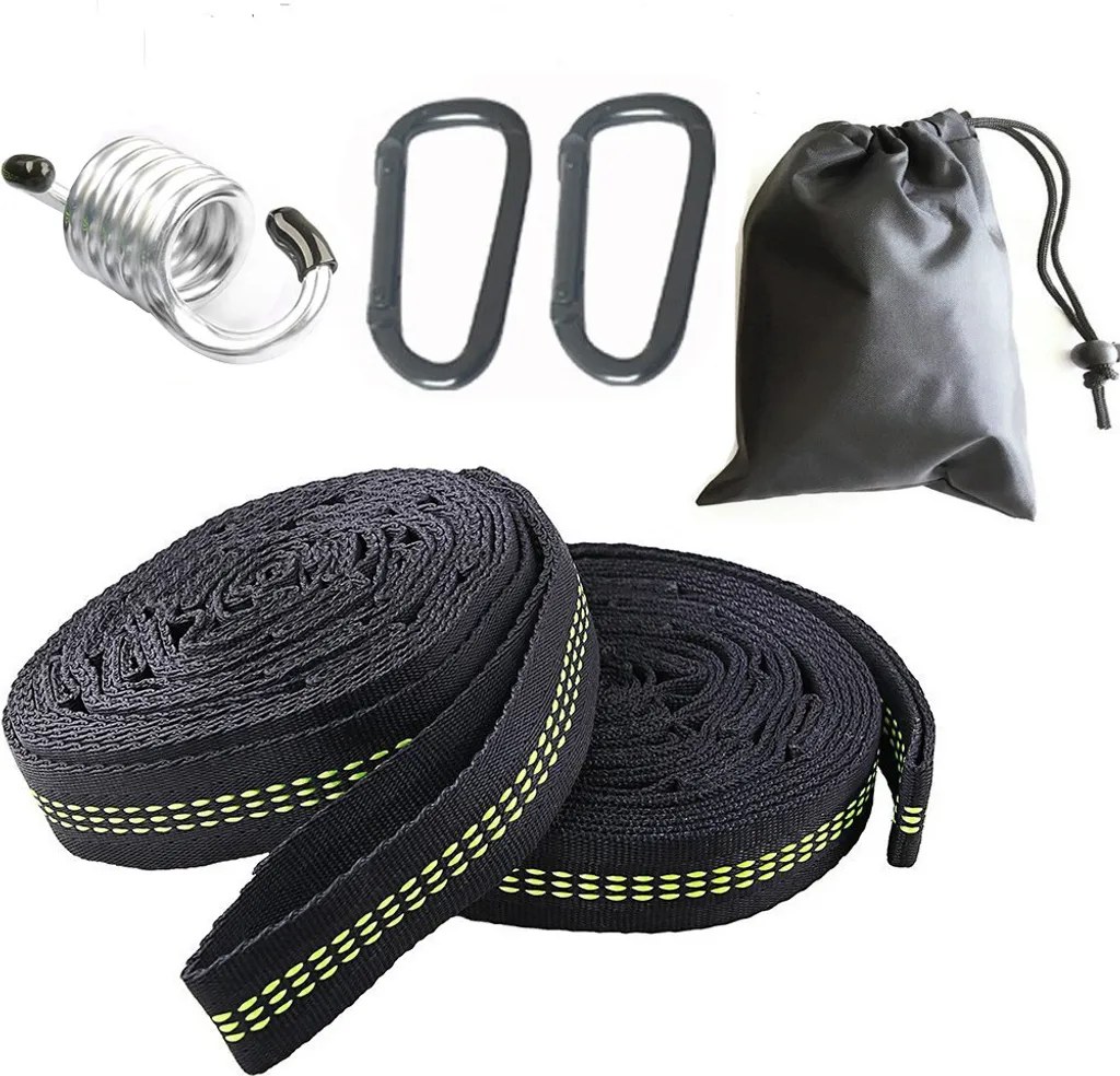Hängemattenbefestigung, Schaukelbefestigung, Baum-Aufhängeset, 3 M X 2,5 Cm, Max. 500 Kg, 15 Stück, 1 Ring, 2 Karabiner, Hängesessel-Zubehör, Stahlfedern Für Camping, Wandern, Outdoor-Reisen