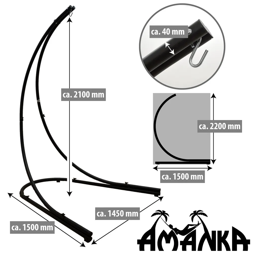 Hängestuhlgestell 210cm | Hängesessel-Stand Ständer Aus Stahl In Schwarz | Belastbarkeit Max. 150KG | Perfekt Für XXL Mehrpersonen-Hängestühle Hängesessel Hängesitz | Freistehendes Metallgestell | Innen- Und Außenbereich