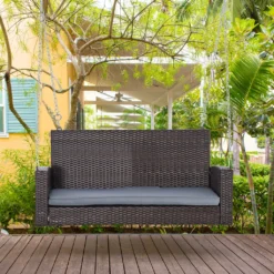 Outsunny Hollywoodschaukel Gartenschaukel Schaukel 2-Sitzer Mit Sonnendach Grau 175 X 112 X 165cm