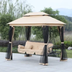 Outsunny Hollywoodschaukel Gartenschaukel Schaukel Mit Seitenwänden 3-Sitzer Beige 230 X 149 X 232cm