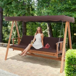 Outsunny Hollywoodschaukel Gartenschaukel Schaukelbank 3-Sitzer Mit Dach Stahl Braun 172x110x152cm