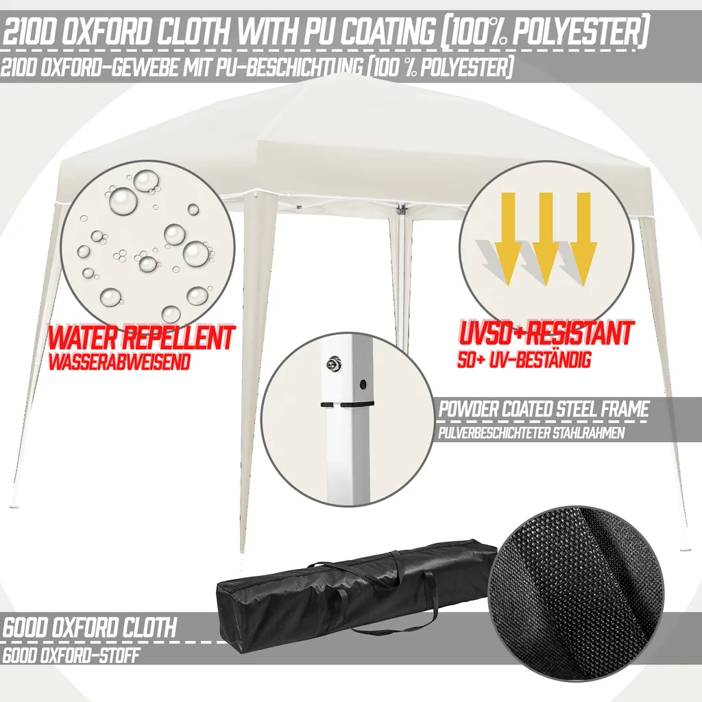 Jago® Pavillon – 3x3m, Wasserdicht, UV-Schutz, Klappbar, Höhenverstellbar, Mit Tasche, Garten, Anthrazit/Beige/Braun – Gartenpavillon, Gartenzelt (Beige)