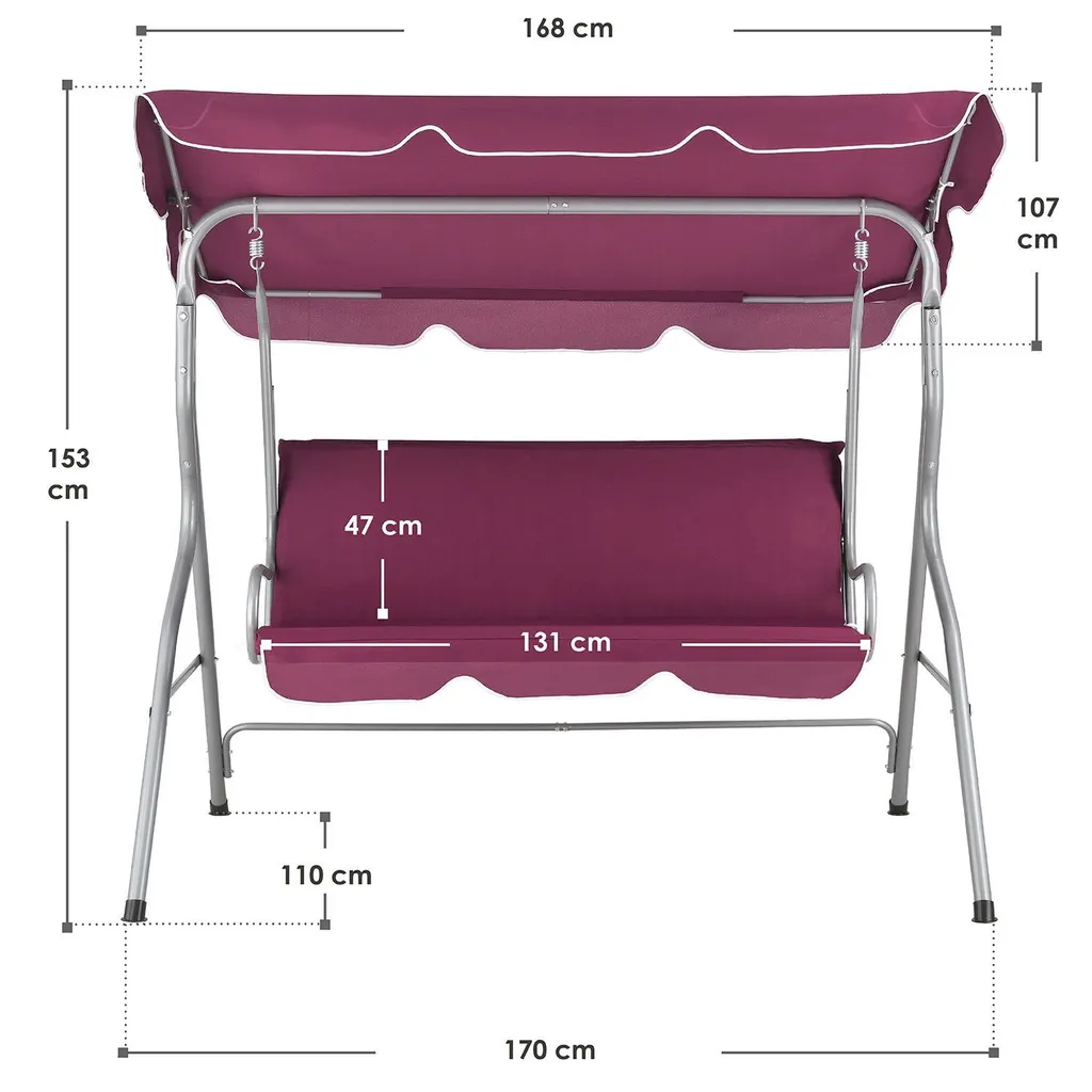 Juskys Hollywoodschaukel 3-Sitzer Mit Dach & Sitzauflage – Gartenschaukel 200 Kg Belastbar – Schaukelbank Für Garten & Terrasse – Rot