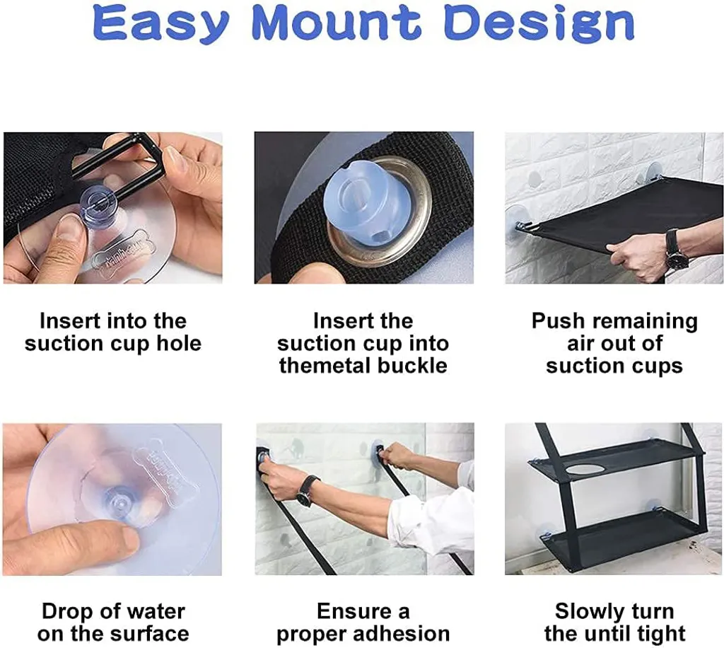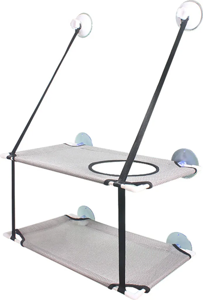 Katzen-Fenstersitz, Katzen-Hängematte, Fenstersitz, Doppelt Für Große Katzen, Platzsparend, Fenstermontage, Langlebig, Sicherheitskatzen-Sitzstange Mit 6 Saugnäpfen, Geeignet Für Große Und Kleine Katzen,Grau,doppellagig