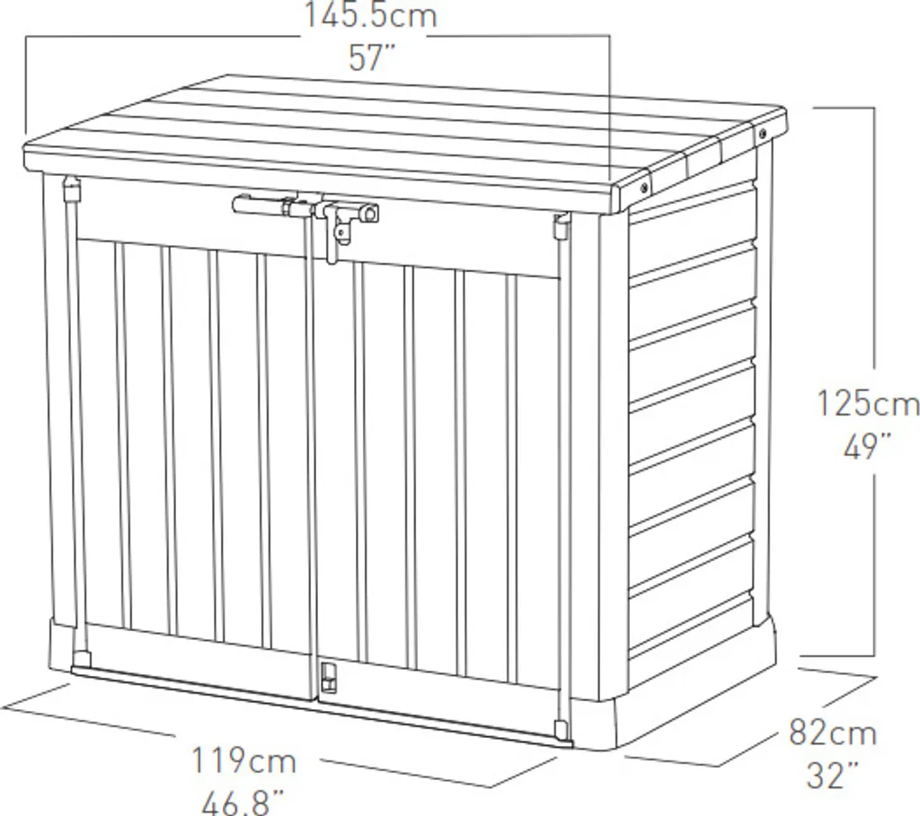 Keter Store It Out Max Mülltonnenbox Mit Gasdruckfeder, Wetterfest, Abschließbar, Beige, 1.200 L, 145,5 X 82 X 125cm