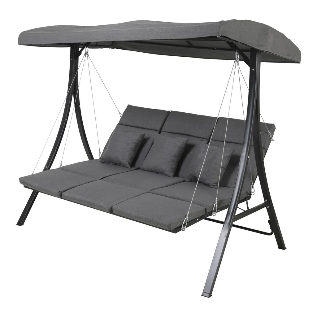 Lesli Living Hollywoodschaukel Gartenschaukel 3-Sitzer „Madeira“ Schwarz/grau