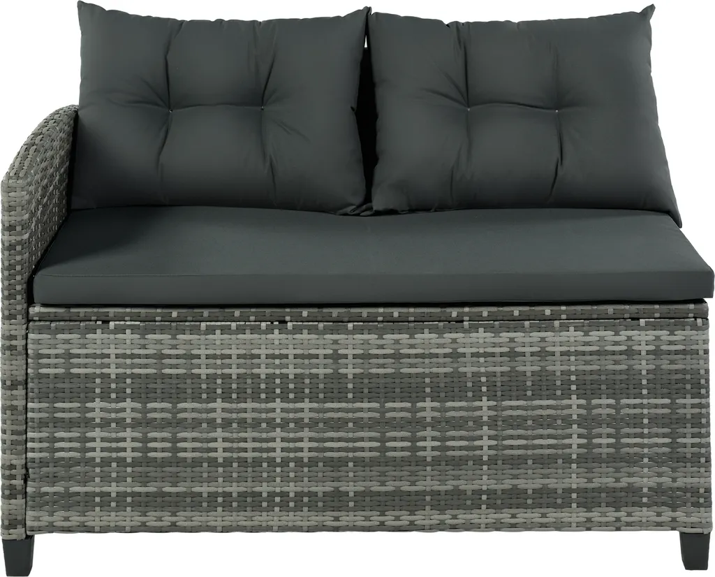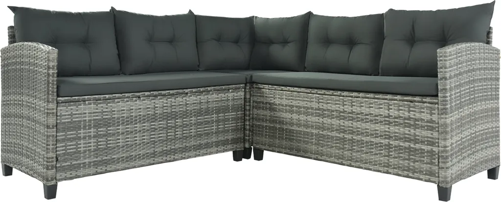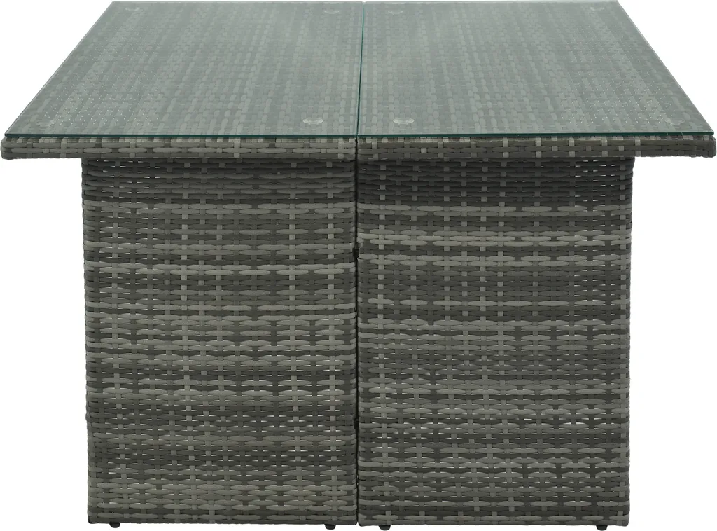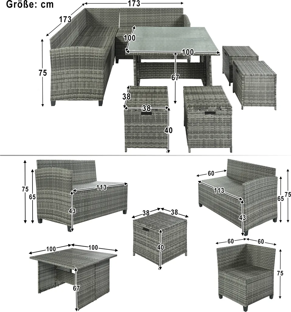 Merax Gartenlounge-Set Polyrattan Lounge Für 9 Personen, 5er Ecksofa, 1xTisch Mit Glas, 4x Hocker Mit Kissen, Gartenmöbel Set Balkonset, Grau
