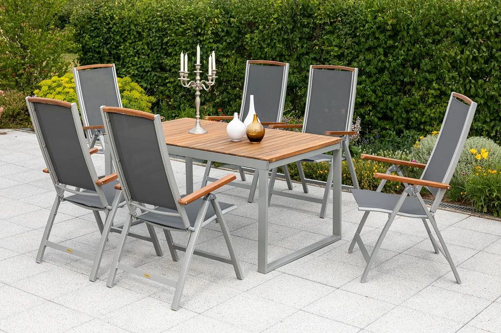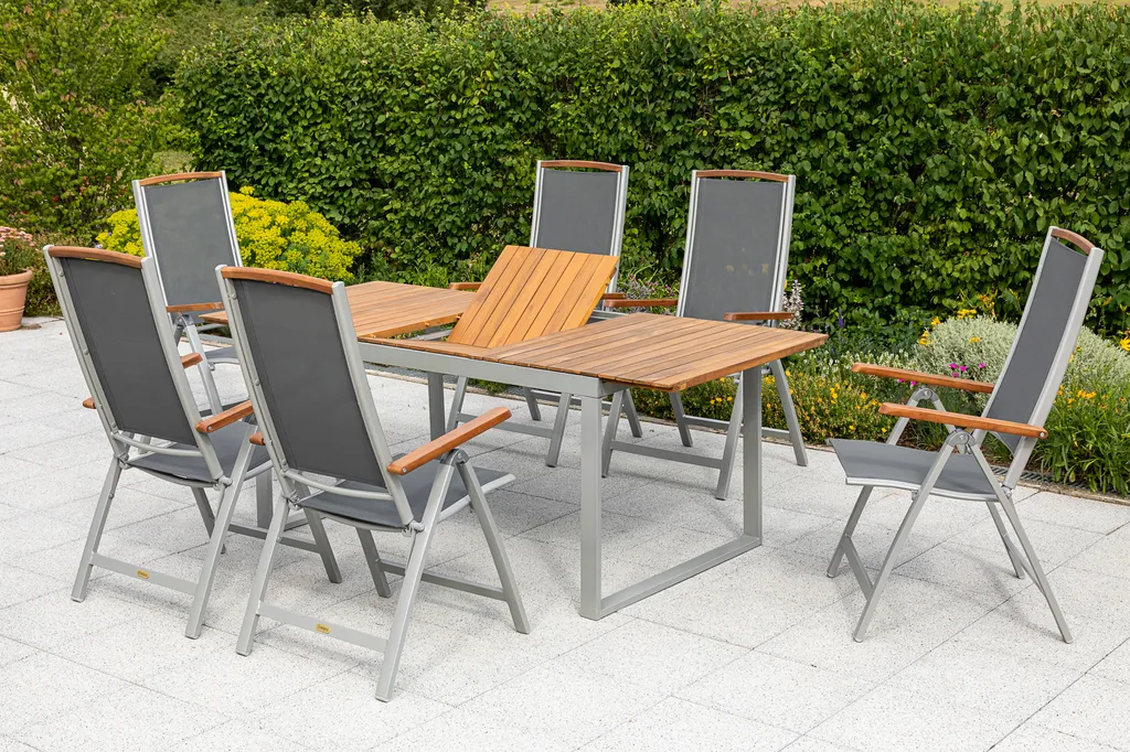 Merxx Gartenmöbelset „Siena“ 7tlg. – Aluminiumgestell Mit Textilbespannung Schwarz Und Akazienholz – 50239-219