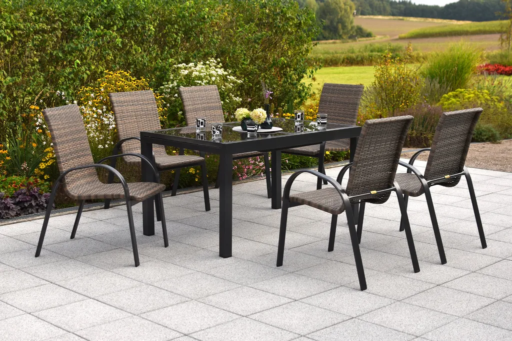 Merxx Gartenmöbelset „Varese“ 7tlg. – Aluminiumgestell Mit Kunststoffgeflecht Mudbraun – 50583-275