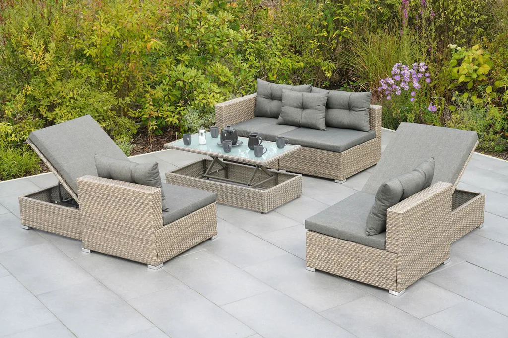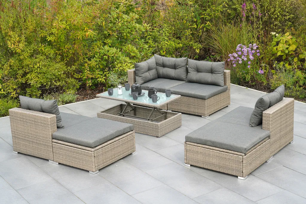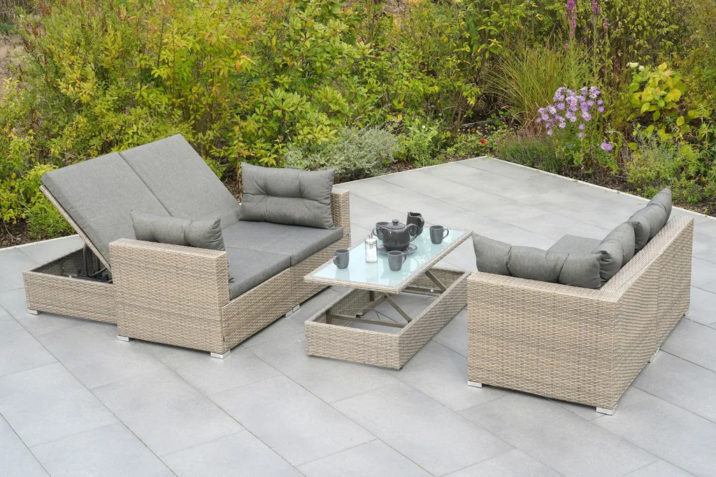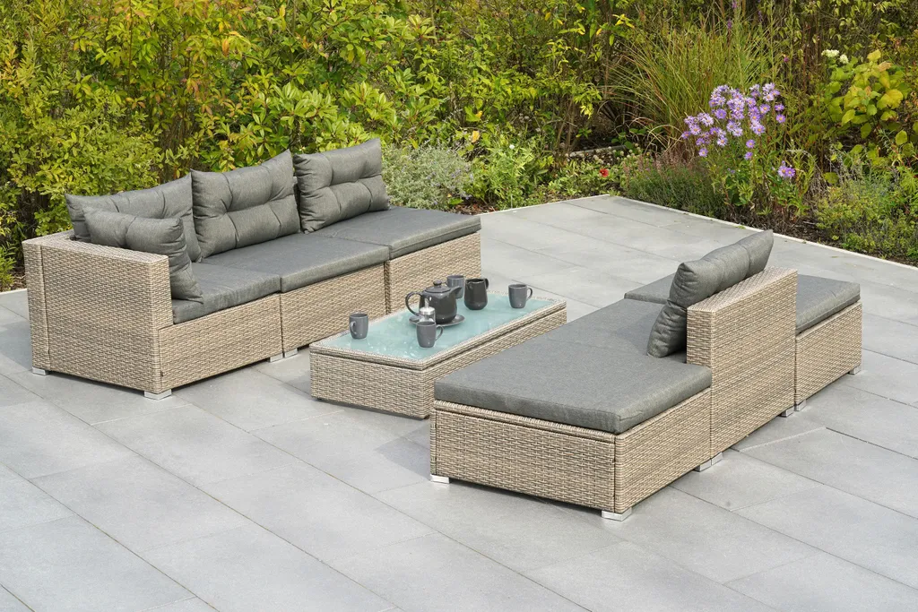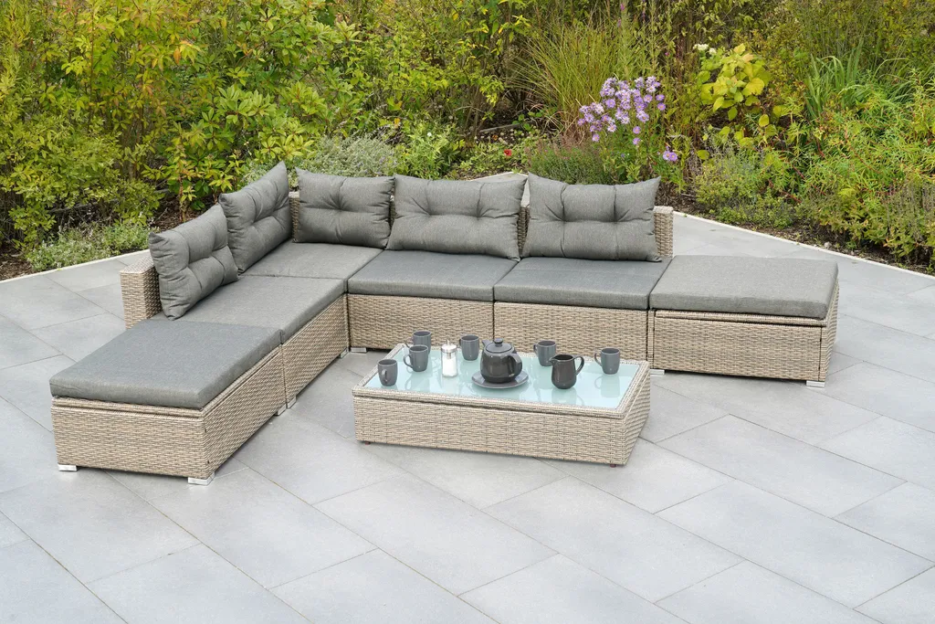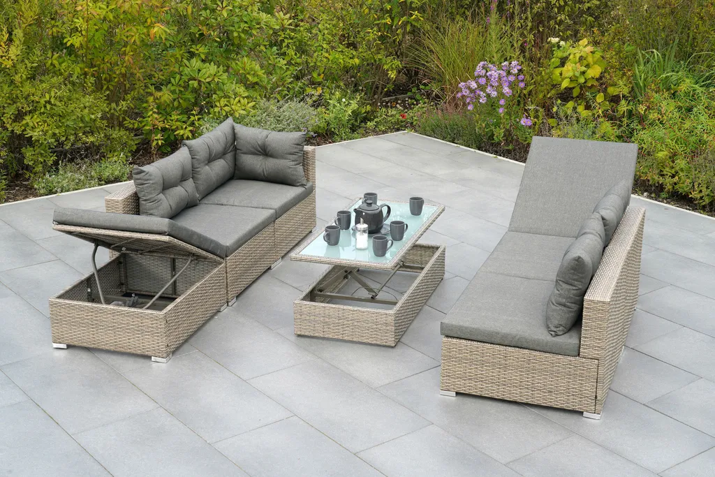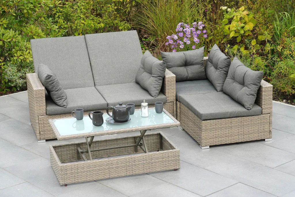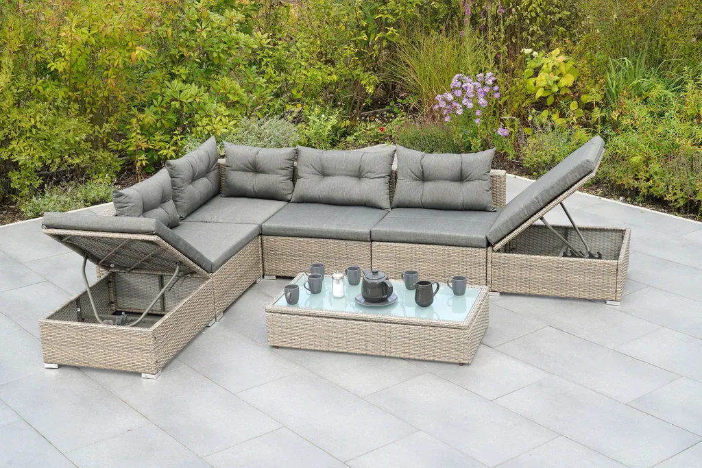 Merxx Multifunktionsecke „Manzano“ – Stahlgestell Mit Kunststoffgeflecht Steinbeige, Inkl. Kissen