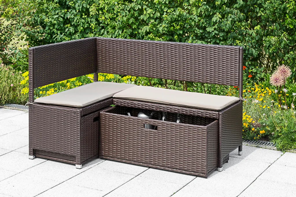 Merxx Unterschiebbox Groß Für Eckbank Set – Stahlgestell Mit Kunststoffgeflecht Braun – 28823-210