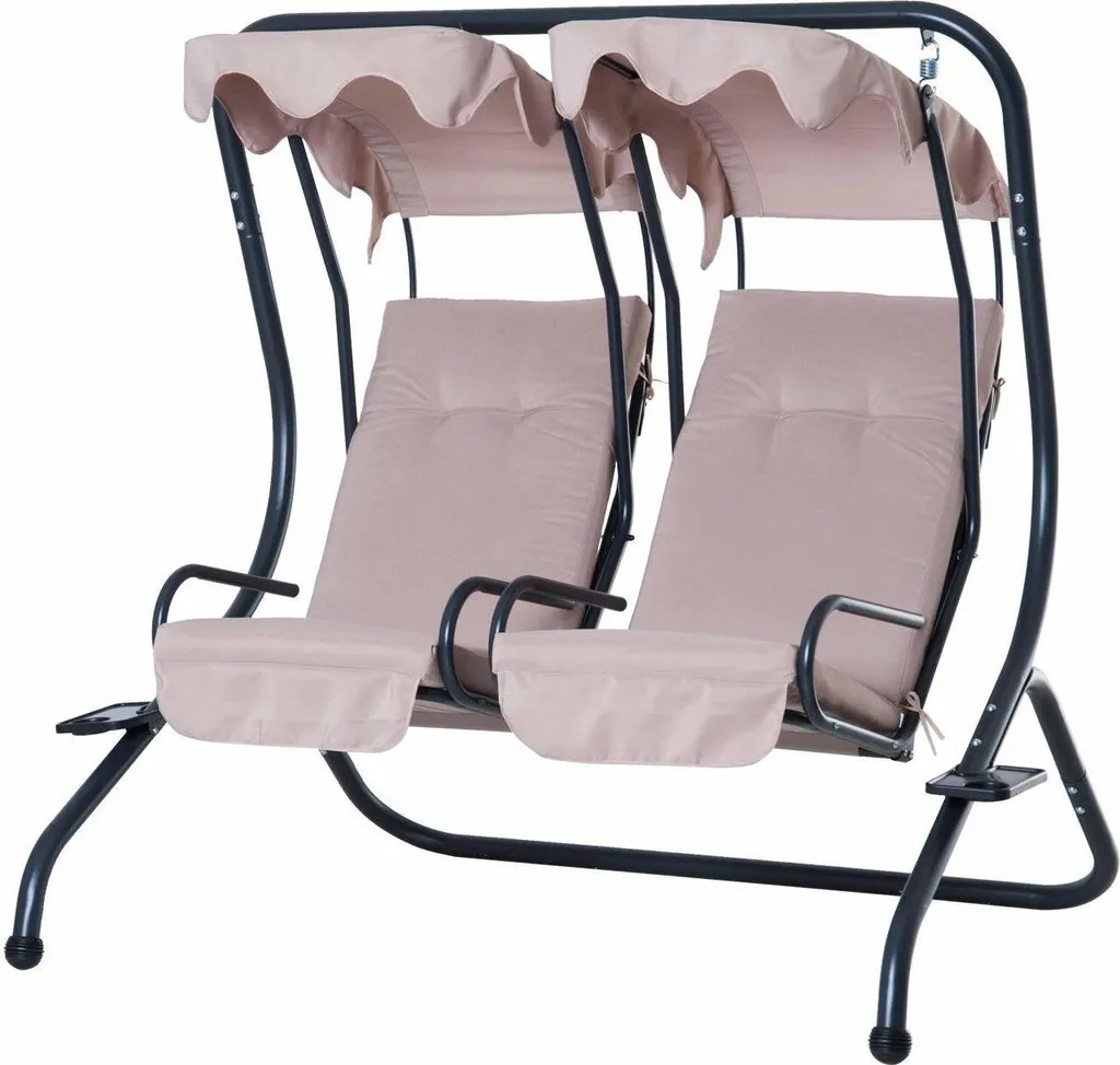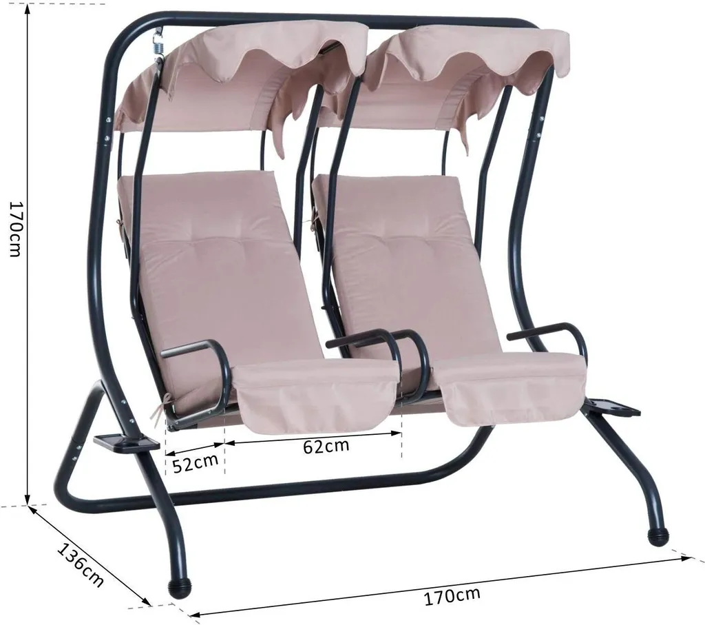 Outsunny 2 Sitzer Hollywoodschaukel Gartenschaukel Mit Sonnendach Gartenstuhl Sitz Mit Sprühbaumwolle Oxfordstoff PE-Beschichtung Stahl Oxford-Stoff Beige 170 X 136 X 170 Cm(pro Sitz)