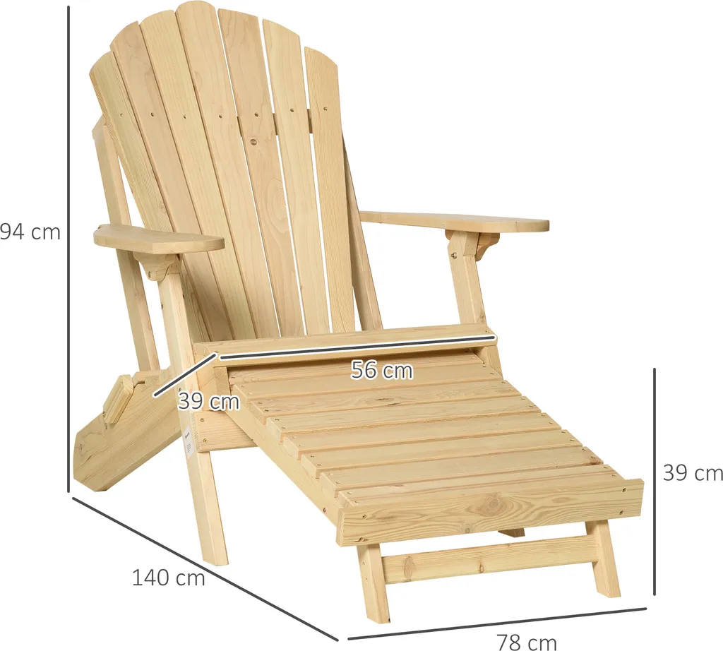 Outsunny Adirondack-Gartenstuhl Mit Fußstütze Klappbar Gartenliege Outdoor Gartenmöbel Kiefernholz Natur 78 X 140 X 94 Cm