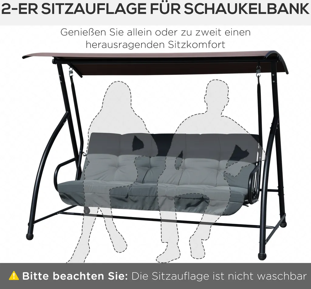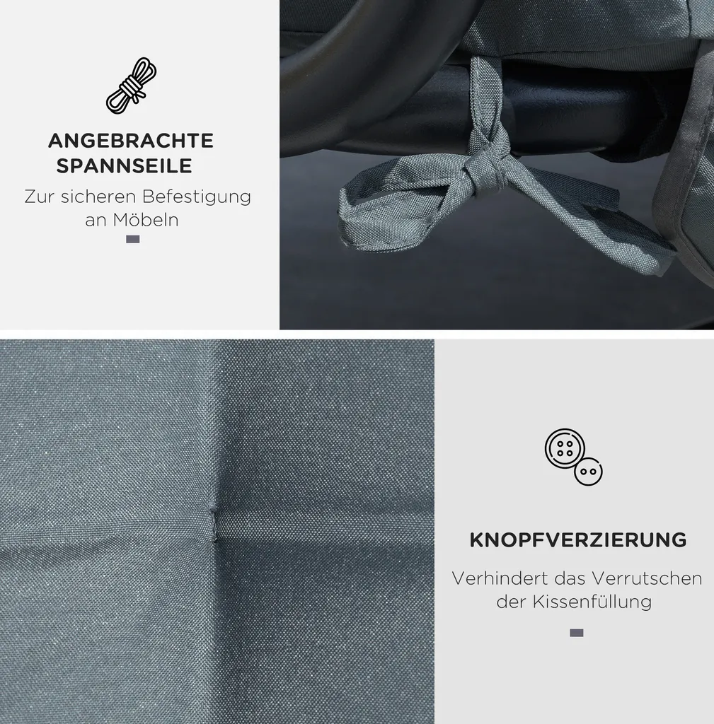 Outsunny Auflagen-Set Für Hollywoodschaukel 170 Cm Stuhlkissen Schaukelauflage Sitzkissen Gartenschaukel Gartenpolster Rückenkissen Seitenkissen Dunkelgrau
