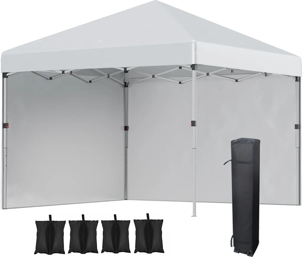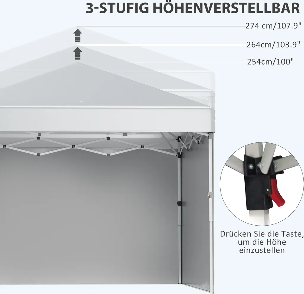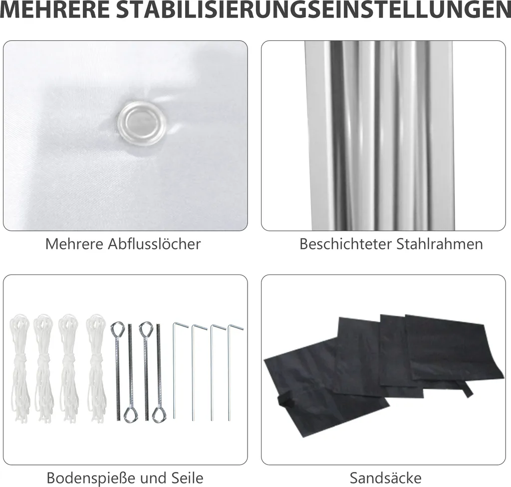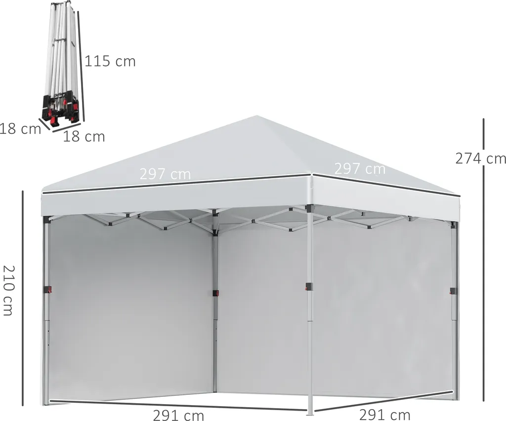 Outsunny Faltpavillon 2,97 X 2,97 M, Pavillon Mit Seitenwänden, Campingzelt Mit UV-Schutz, Partyzelt Mit Sandsack, Gartenpavillon, Pop-Up-Zelt Für Terrasse, Stahl, Hellgrau