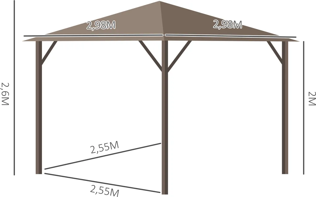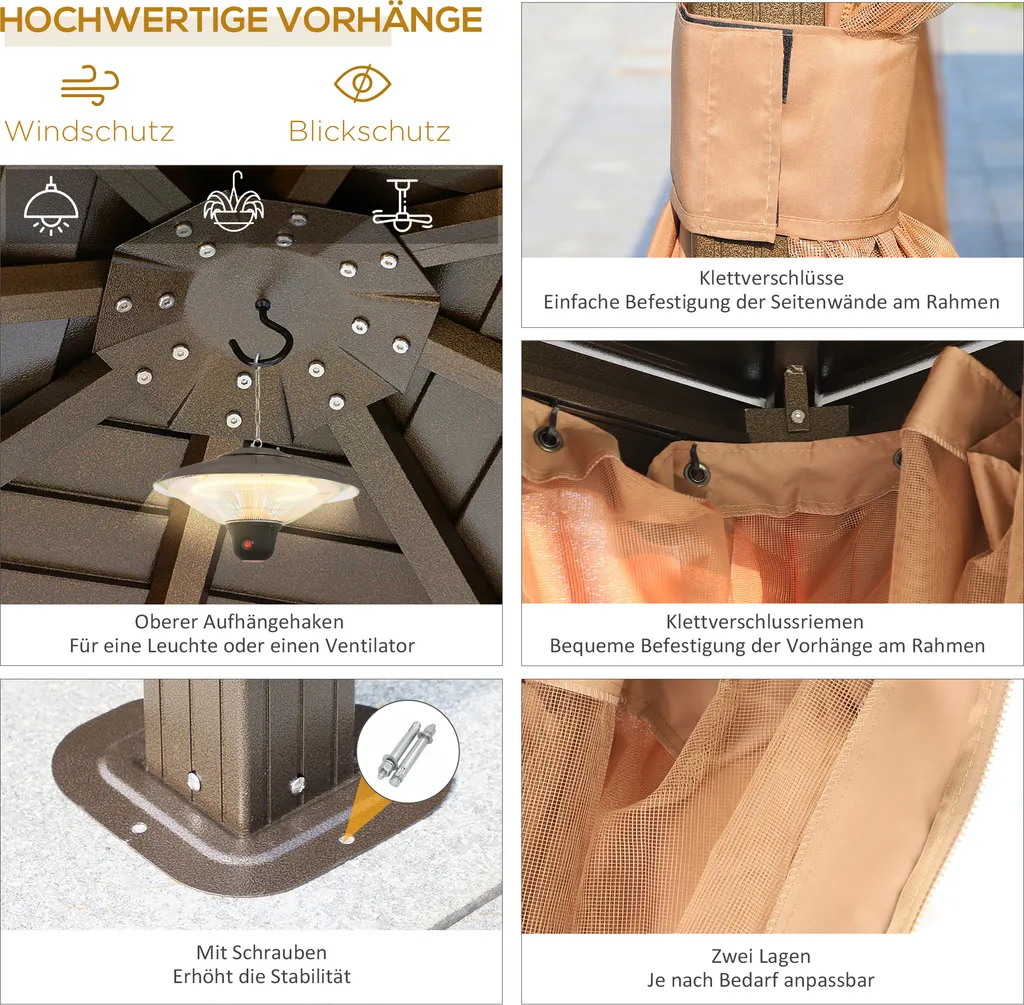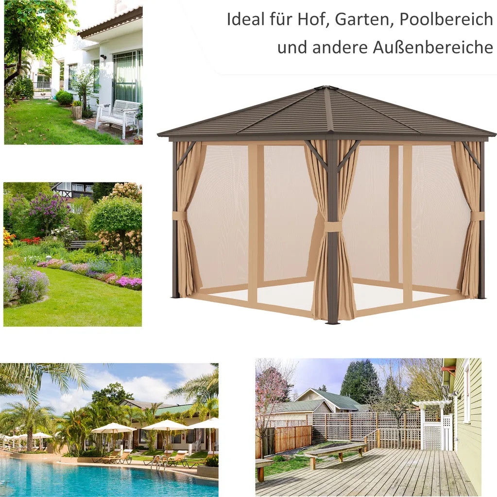 Outsunny Gartenpavillon Partyzelt 4 X Doppel-Seitenwänden Laternenhaken Alu + Polyester Bronze+Hellbraun Ca. 3 X 3 X 2,5 M