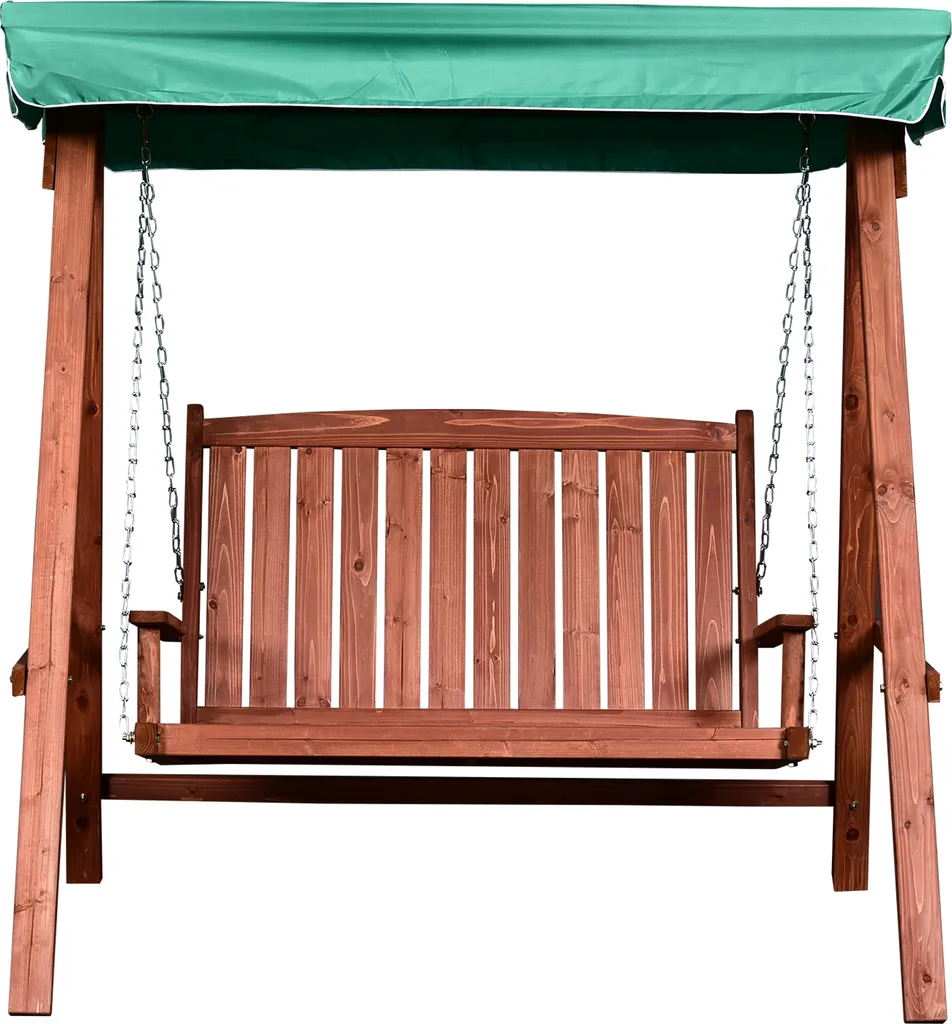 Outsunny Gartenschaukel Für 2 Personen, Hollywoodschaukel, Schaukelbank Mit Dach, Massivholz, Grün, 160 X 120 X 165 Cm