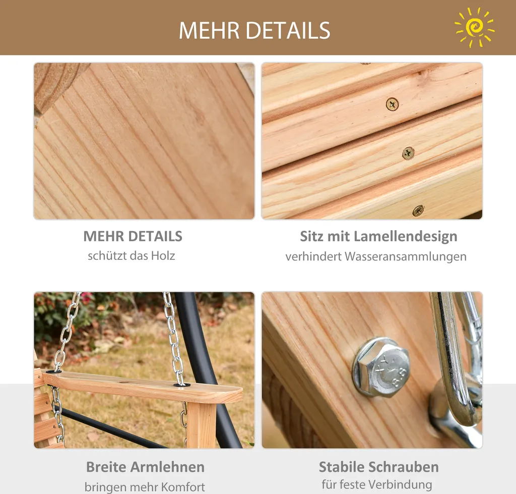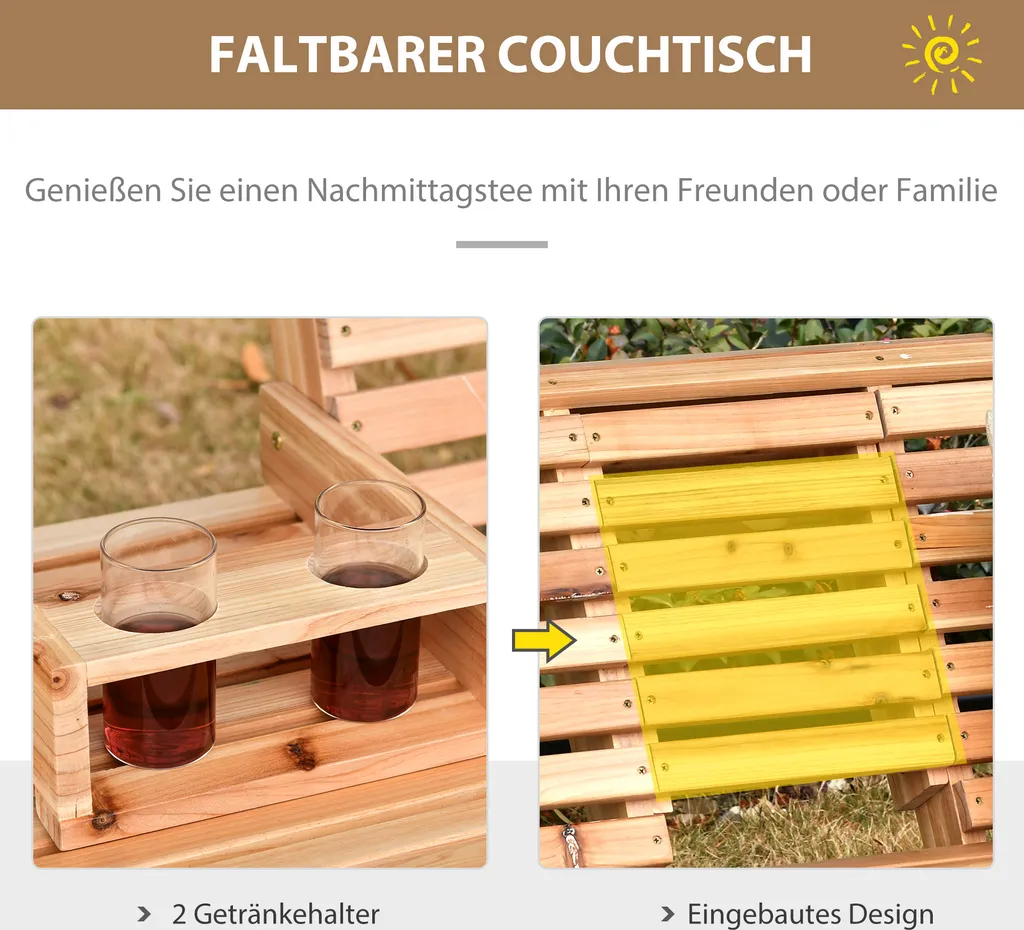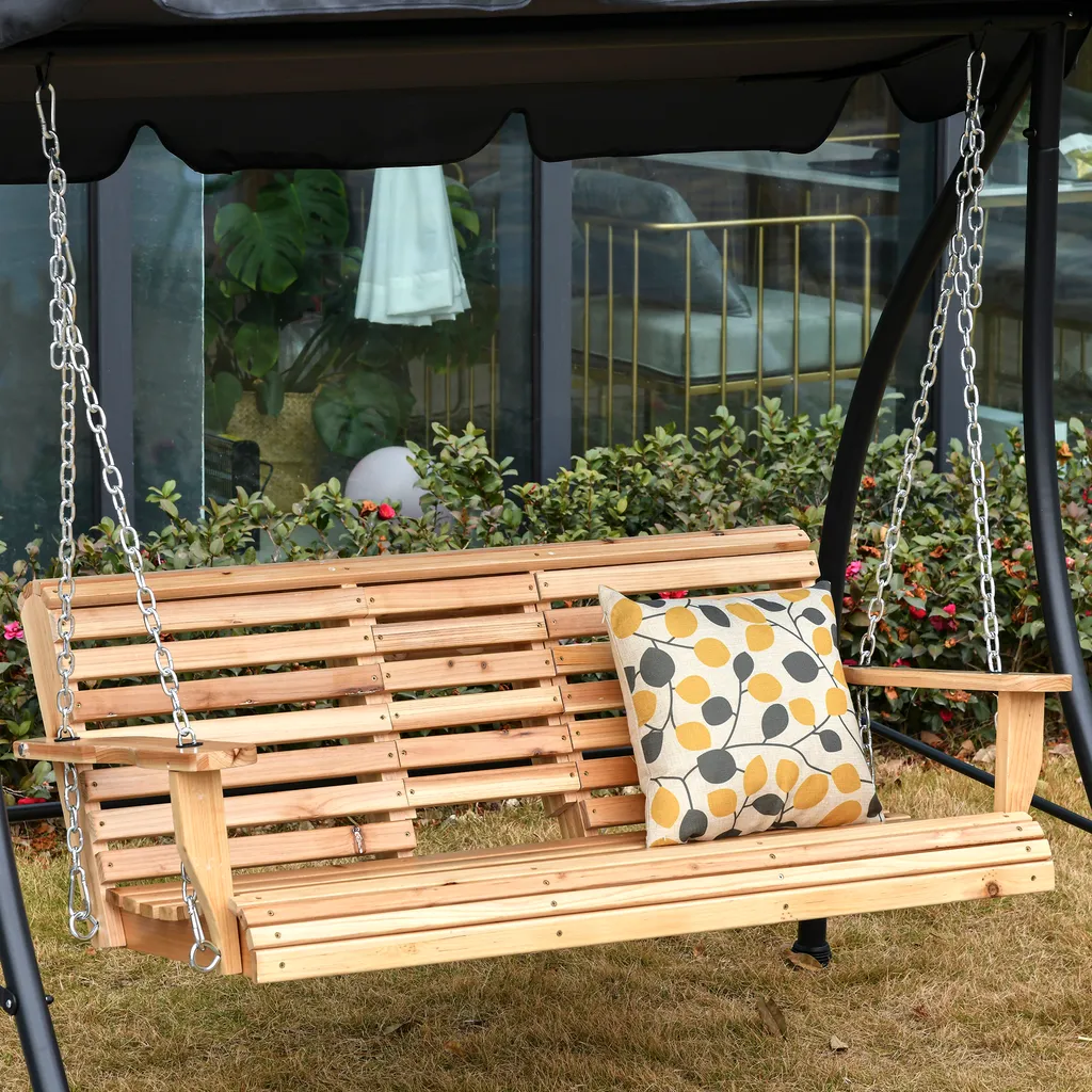 Outsunny Gartenschaukel Schaukelbank Hängebank Mit Faltbarem Couchtisch Für 2-3 Personen Tannenholz Patio Terrasse Hinterhof Komfortable 150 X 75 X 53 Cm Natur
