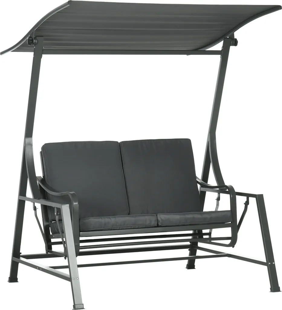 Outsunny Hollywoodschaukel, 2-Sitzer Gartenschaukel, Schaukelbank Mit Verstellbarem Sonnendach, Sitzkissen, Für Balkon, Dunkelgrau, Stahl, 148 X 129 X 172 Cm
