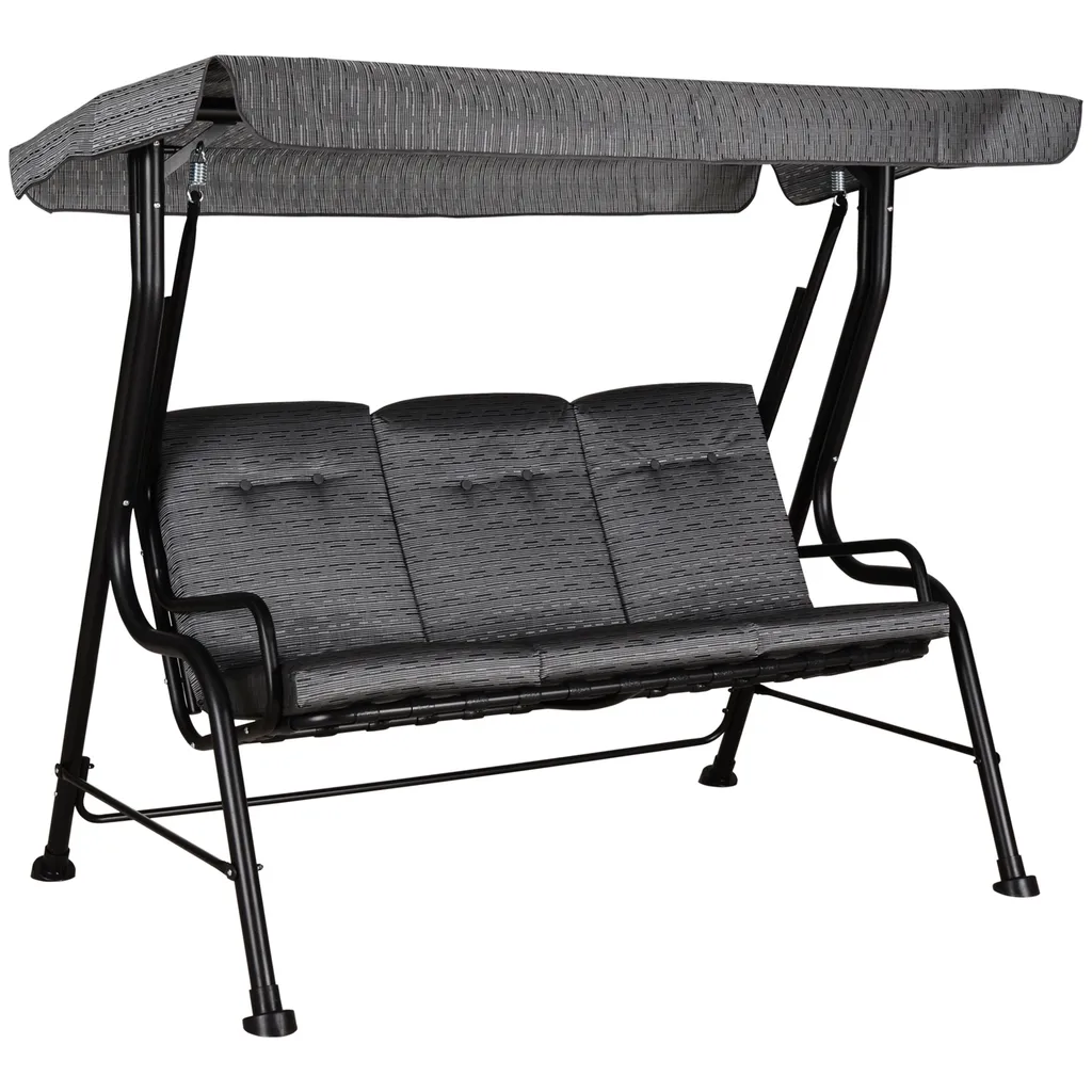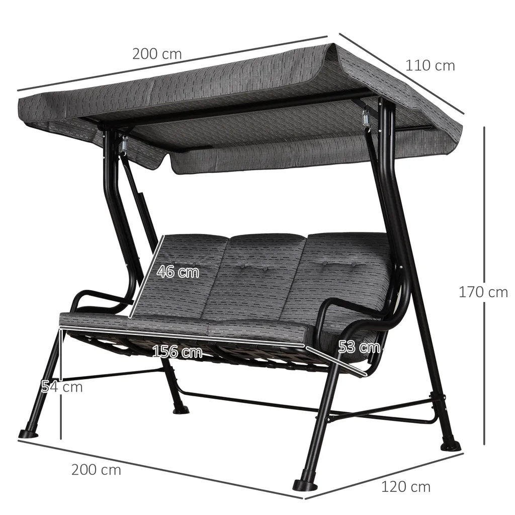 Outsunny Hollywoodschaukel, 3-Sitzer Gartenschaukel, Verstellbares Sonnendach, Textilene Grau 200 X 120 X 170 Cm