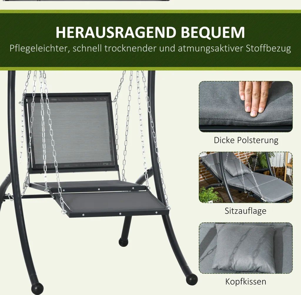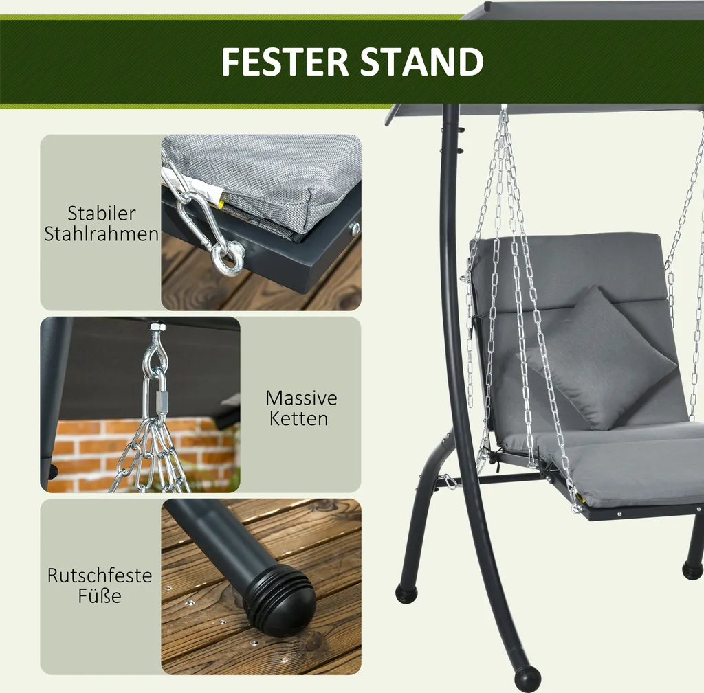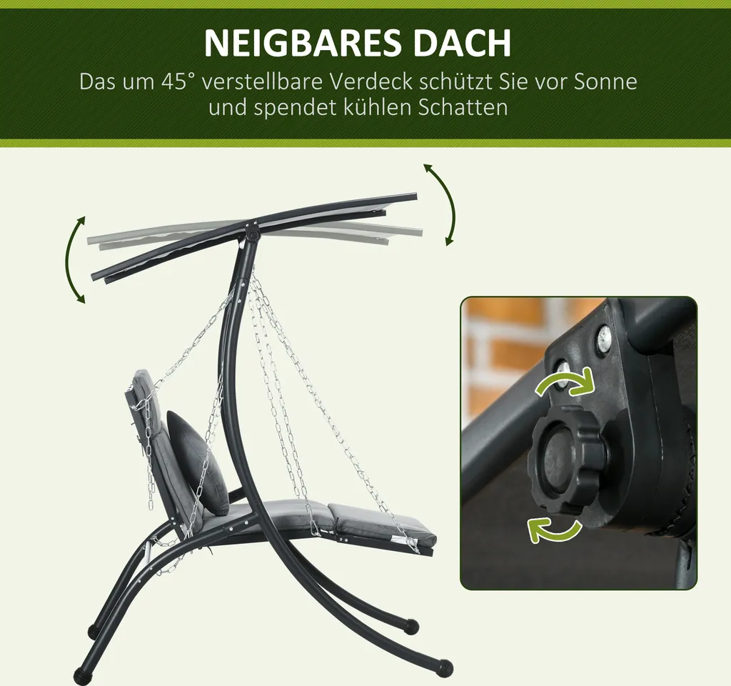 Outsunny Hollywoodschaukel, Gartenschaukel Mit Kissen, Hängeliege Mit Verstellbarem Sonnendach Für Garten, Balkon, 108 X 145 Cm X 169 Cm, Stahl, Dunkelgrau