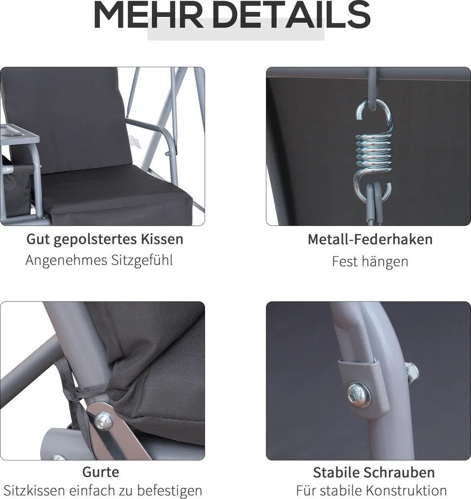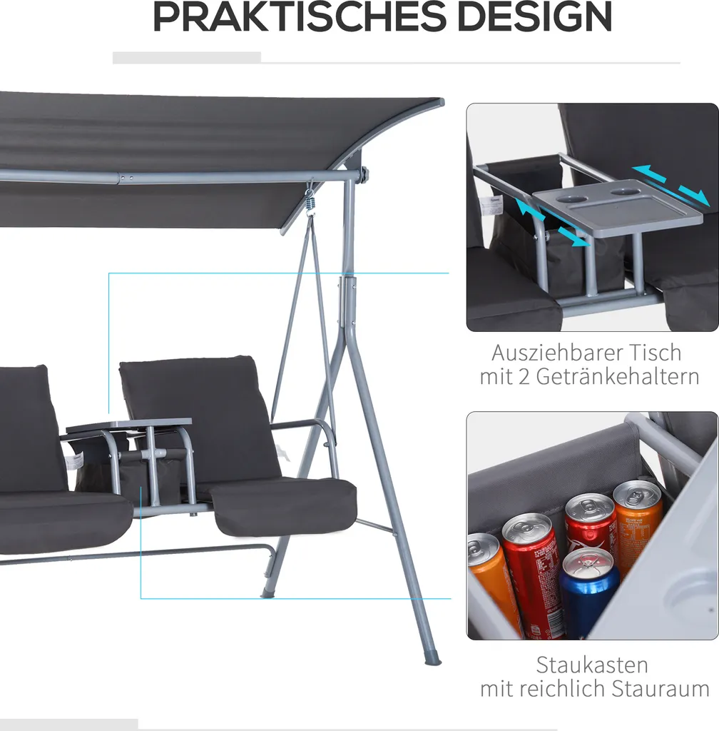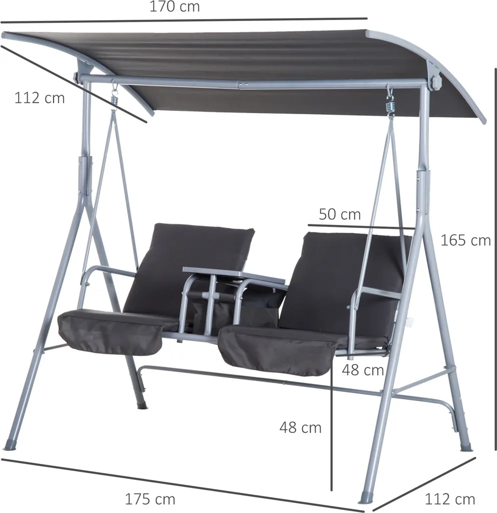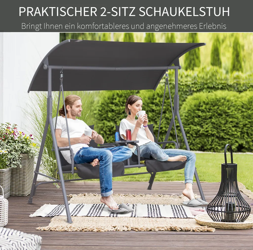 Outsunny Hollywoodschaukel Gartenschaukel Schaukel 2-Sitzer Mit Sonnendach Grau 175 X 112 X 165cm