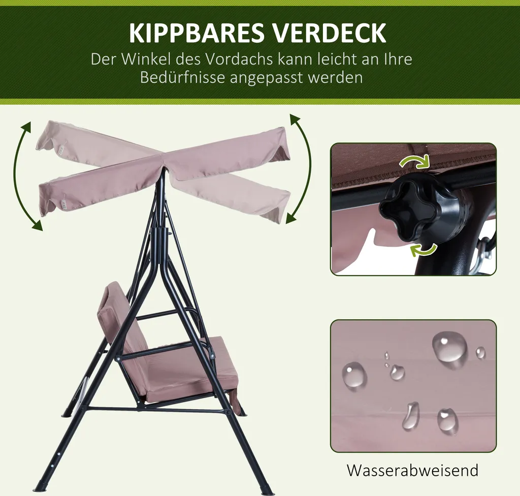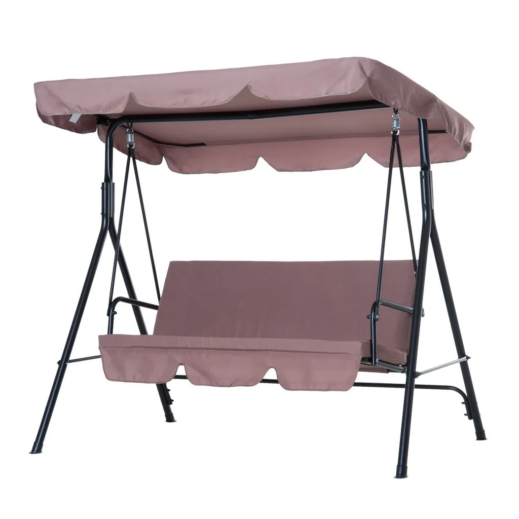 Outsunny Hollywoodschaukel Gartenschaukel Schaukelbank 3-Sitzer Mit Dach Stahl Braun 172x110x152cm