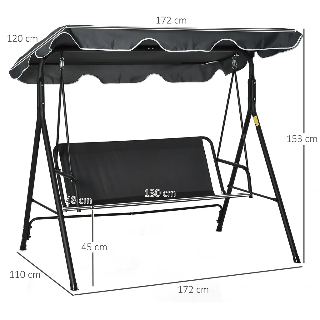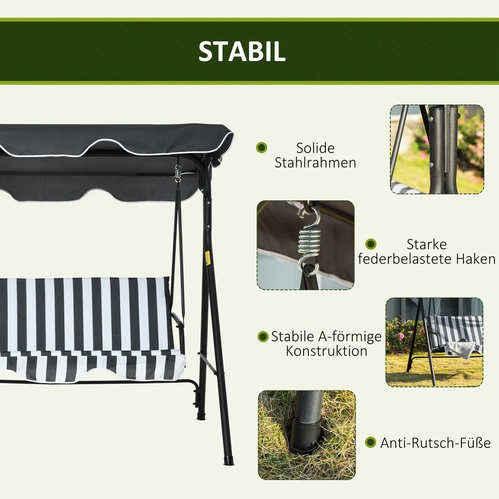 Outsunny Hollywoodschaukel Gartenschaukel Schaukelbank 3-Sitzer Mit Dach Stahl Grau+weiß 172 X 120 X 153cm