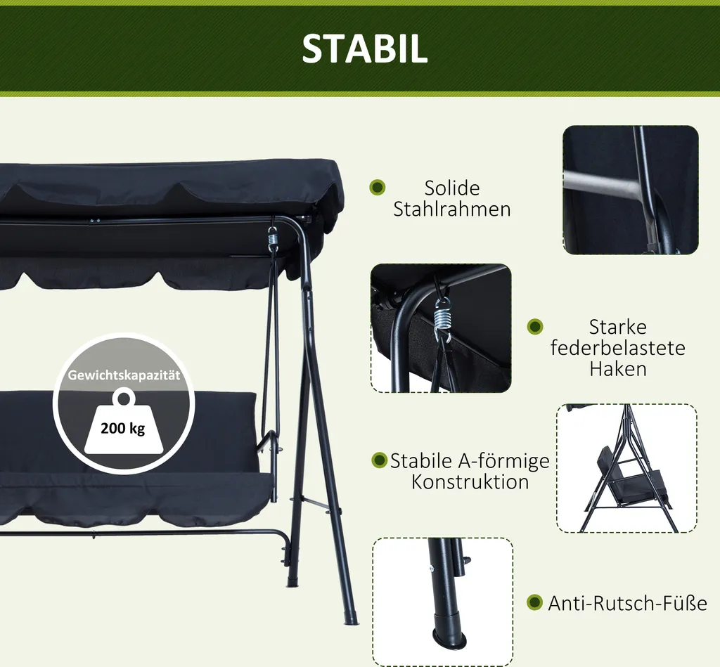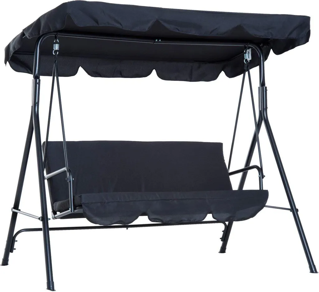 Outsunny Hollywoodschaukel Gartenschaukel Schaukelbank 3-Sitzer Mit Dach Stahl Schwarz 172x110x152cm