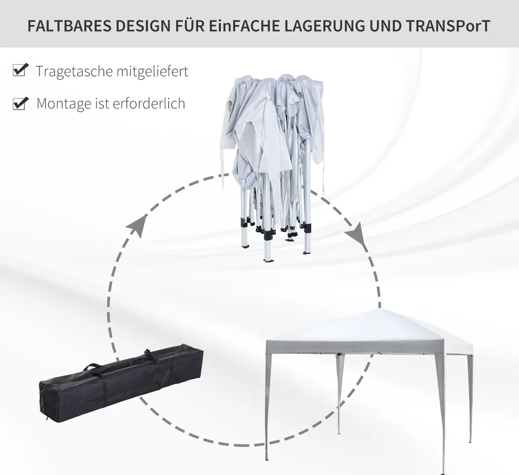 Outsunny Pavillon 2,95 X 2,95 M Pop-Up Faltpavillon Gartenpavillon Faltbar Partyzelt Gartenzelt UV-Schutz Stahl+Oxford Weiß