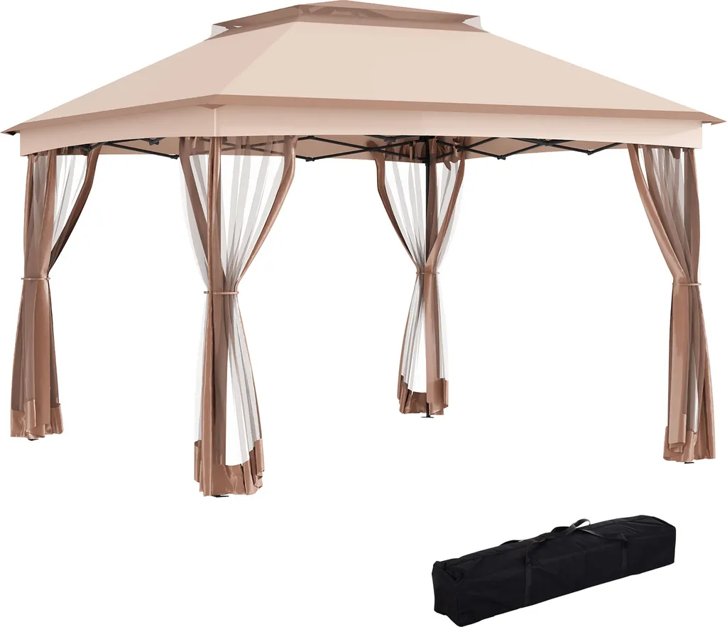 Outsunny Pavillon Faltpavillon Gartenzelt Mit Seitenwänden Popup Khaki 3,25×3,25×2,95cm