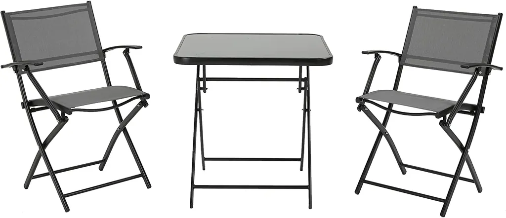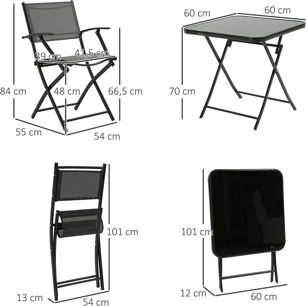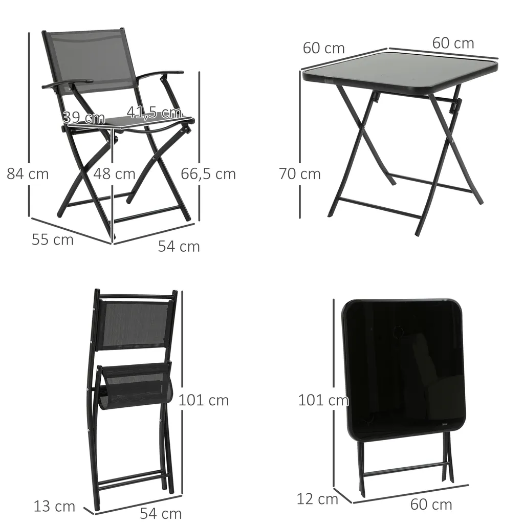Outsunny Sitzgruppe Klappbar 3tlg. Balkonset Balkonmöbel 1 Tisch+2 Stühle Gartenmöbel Set Sitzgarnitur Metall Mesh Schwarz+Grau