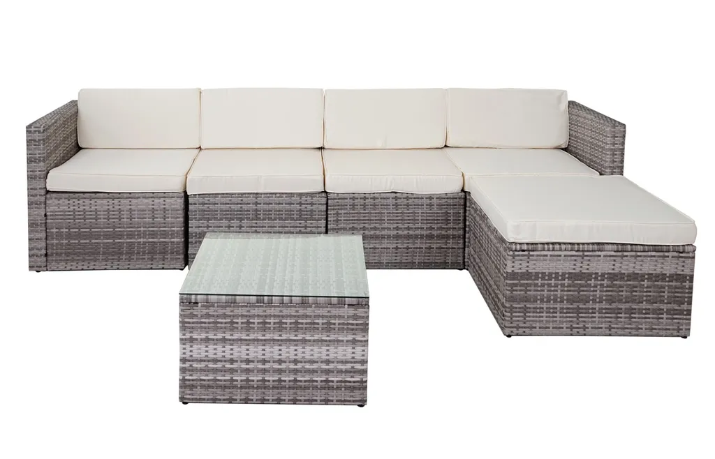 Poly-Rattan-Garnitur MCW-D24, Garten-/Lounge-Set Sofa Grau, Polster Creme