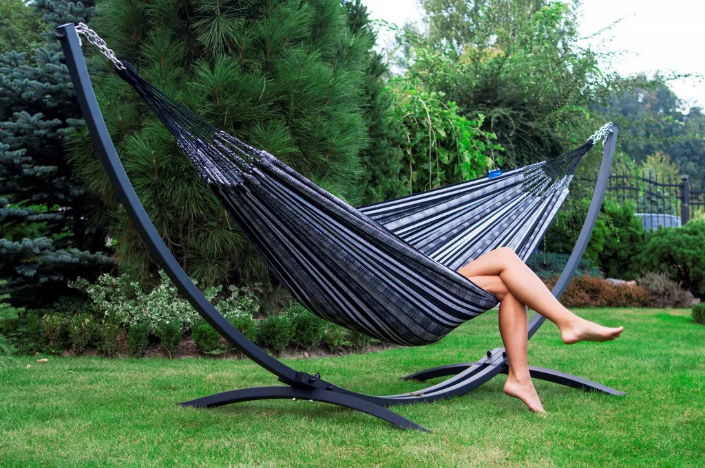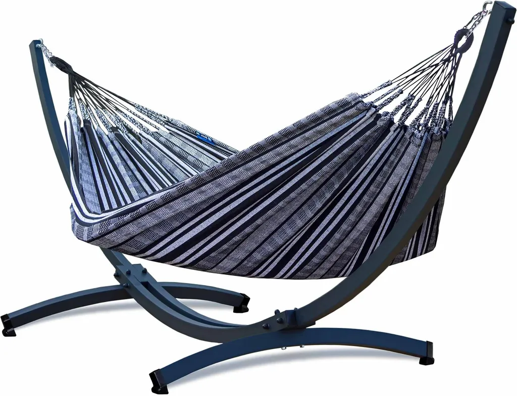 Potenza Outdoor Pereira Hängematte Mit Aluminium Gestell Für 2 Personen I 100% Baumwolle Doppelhängematte 230×160 Cm, 200kg I Hängemattengestell 200kg, Wetterfest